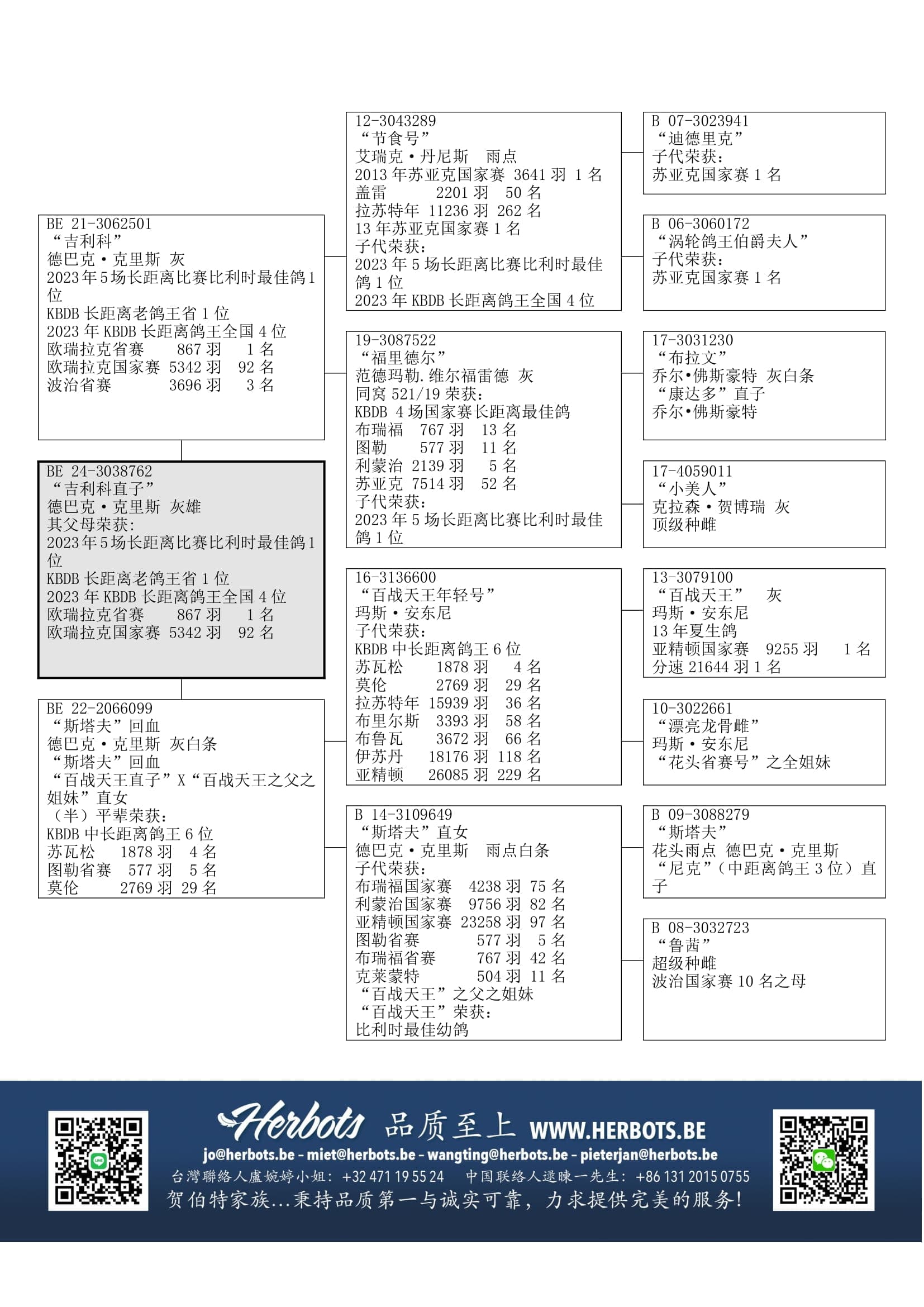 “节食号” ( 苏亚克国家赛 3,641羽1名) x “福里德尔” (4场国家赛长距离最佳鸽之同窝姐妹)作出