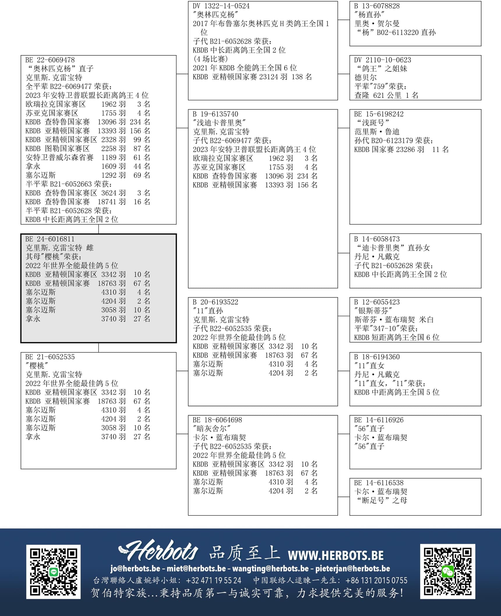 “维姆”: 2024 年KBDB 全能老鸽/一岁鸽鸽王全国2位