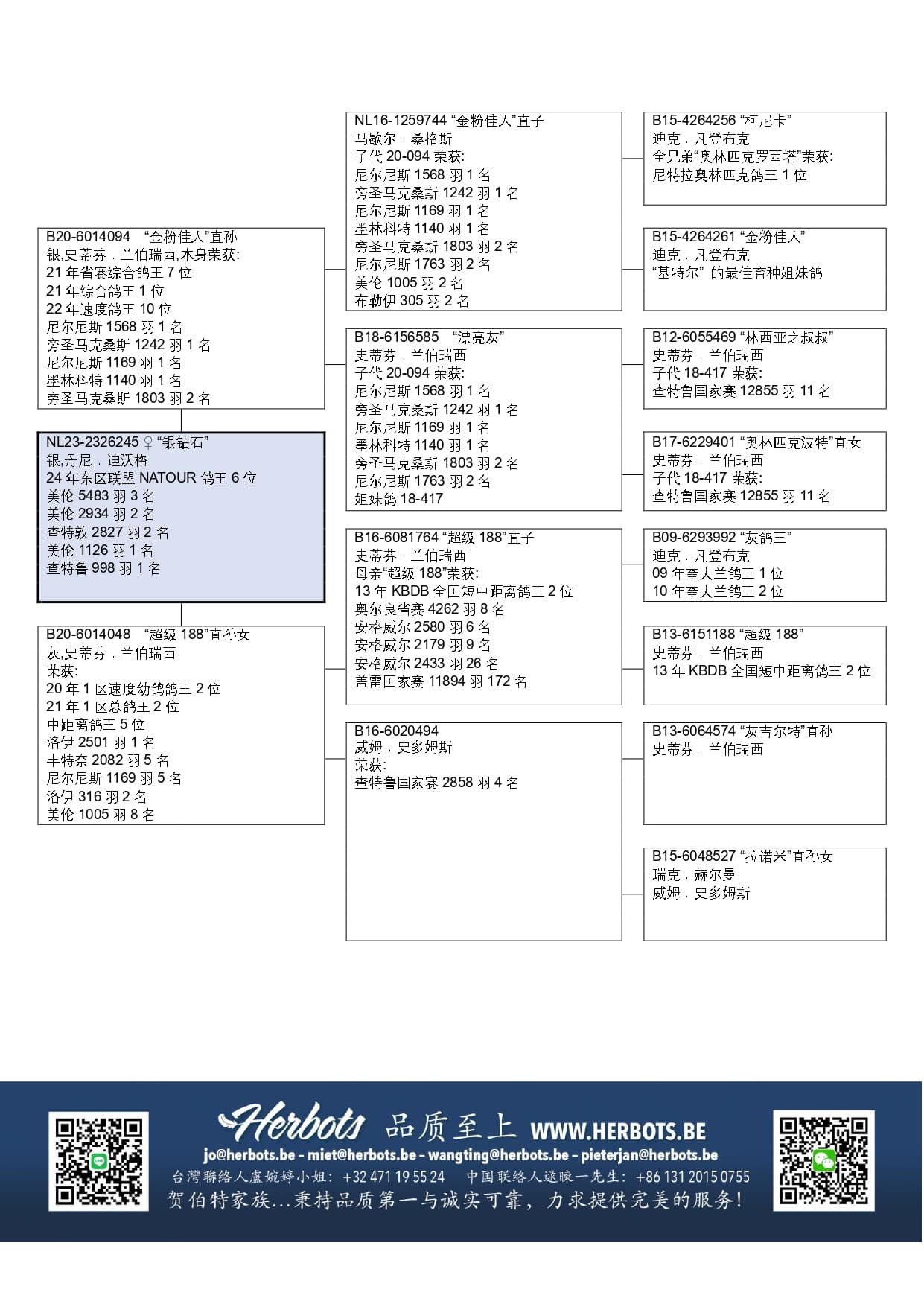祖母:“超级188”,荣获: 2013年KBDB全国短中距离鸽王2位