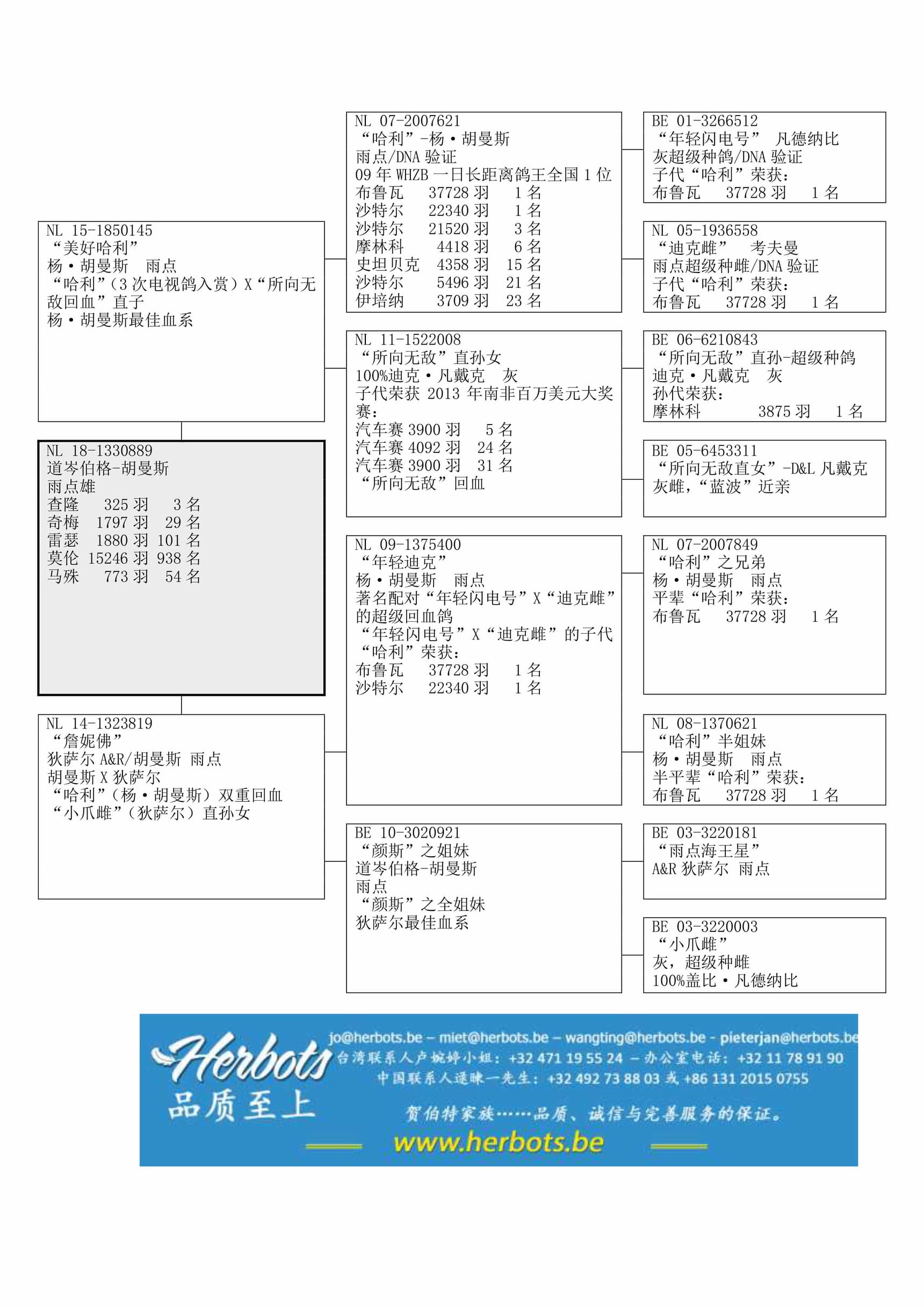 荣获 (无重复计算) 16 次前 1/4 – 7 次前1/10 – 1 次前 1/100 查隆 E/C 325羽 3名 247公里奇梅 1,797羽 29名 152公里马殊 773羽 54名 87公里雷瑟 625羽 59名 193公里雷瑟 1,880羽 101名 193公里查隆 E/C 1,813羽 153名 247公里莫伦省赛 15,246羽 938名 343公里