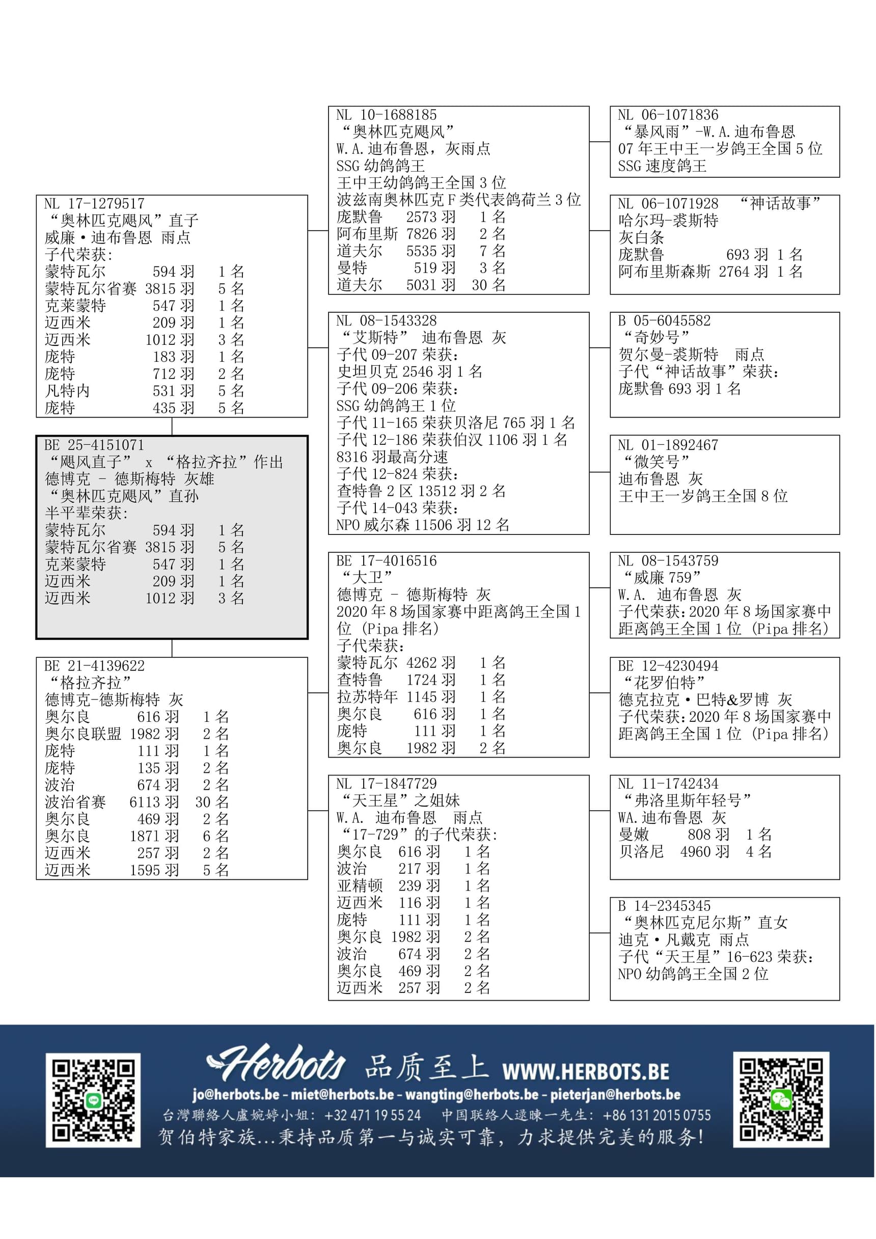 荣获: 20年8场国家赛中长距离鸽王全国1位