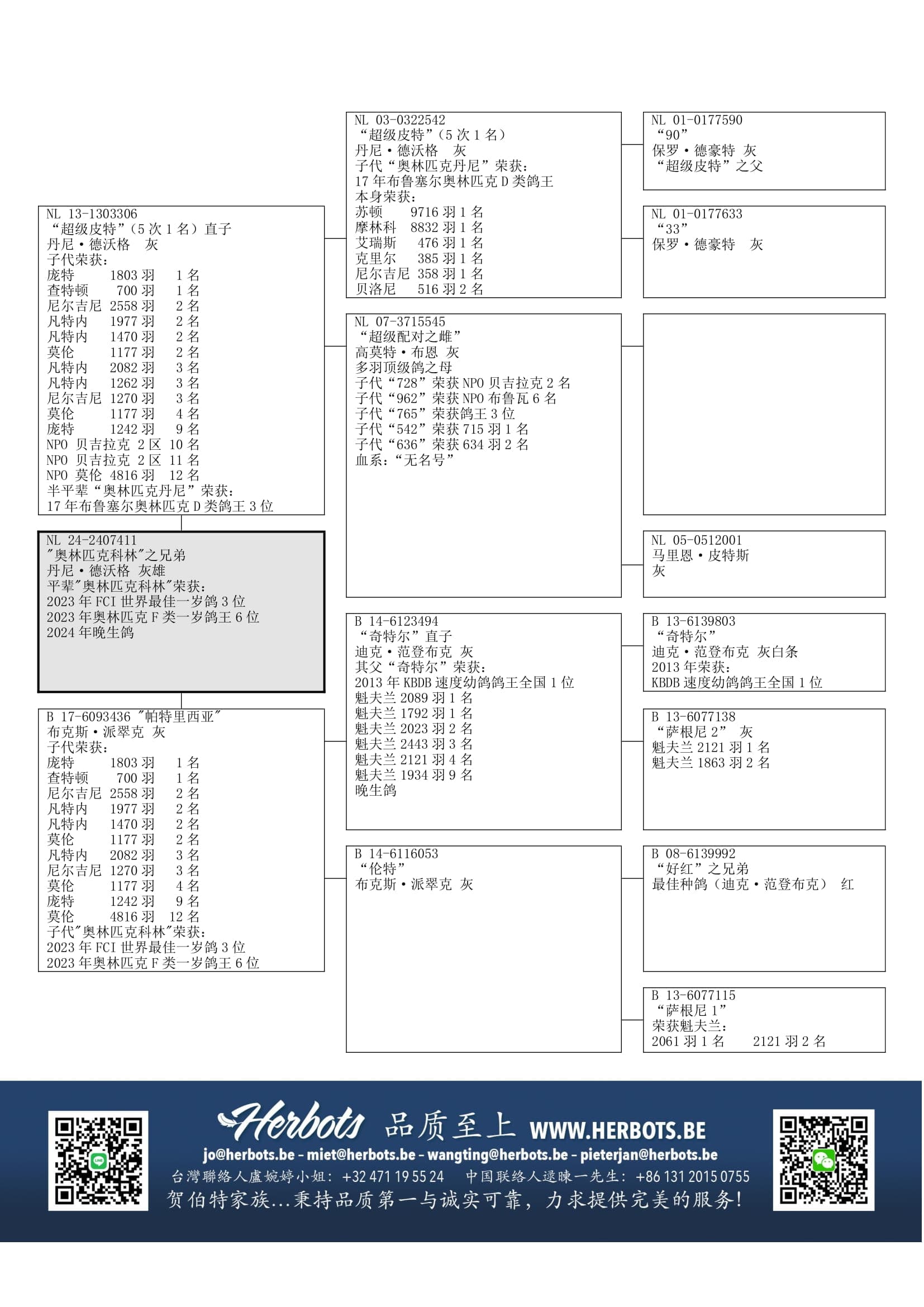 冠军种鸽“好红之兄弟”x “萨根尼 I” (2,061羽1名 – 2,121羽 2名等等)作出