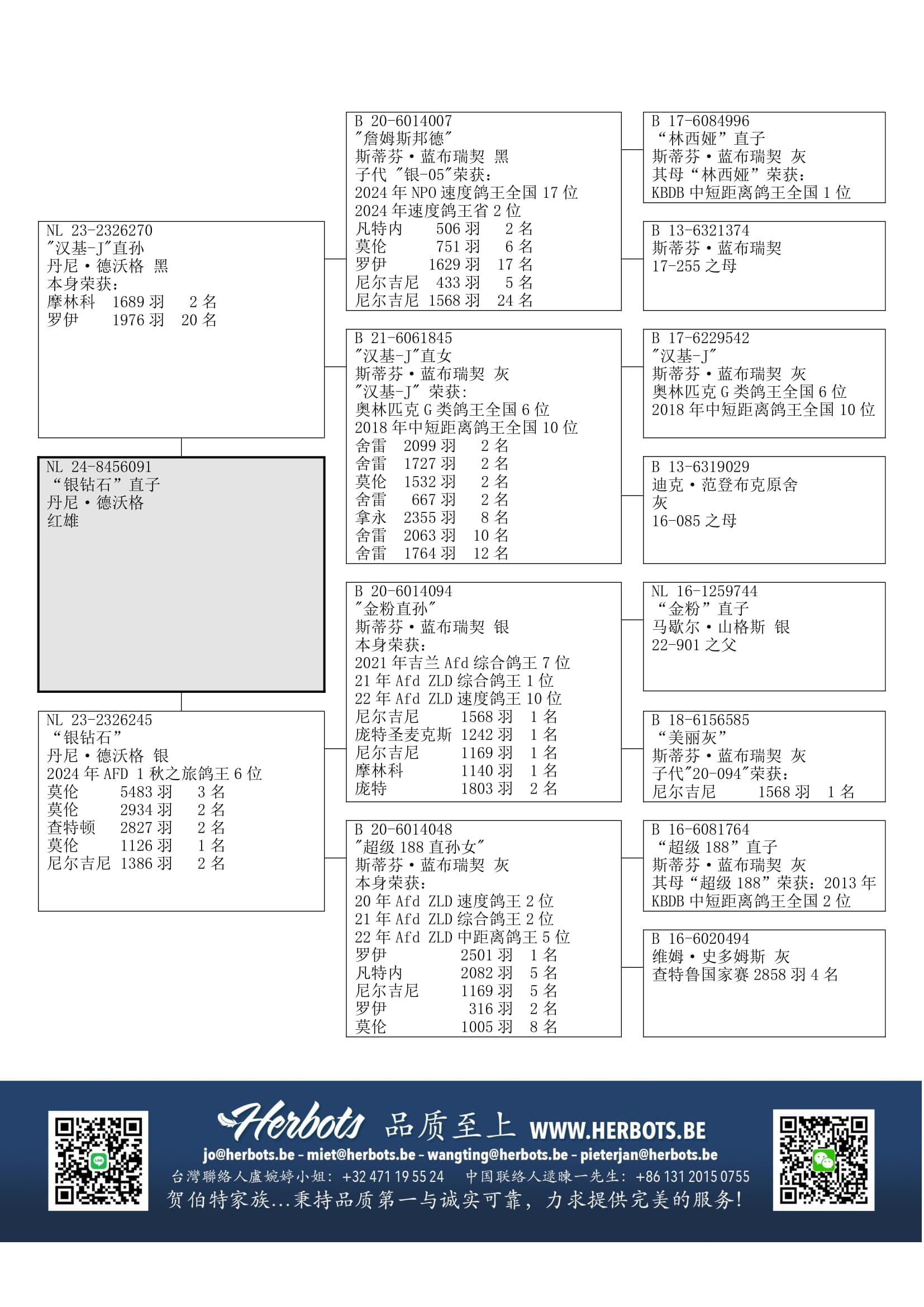 “汉基 J” (18年KBDB中距离鸽王全国10位) x “B13-6319029” (范登布克原舍)作出
