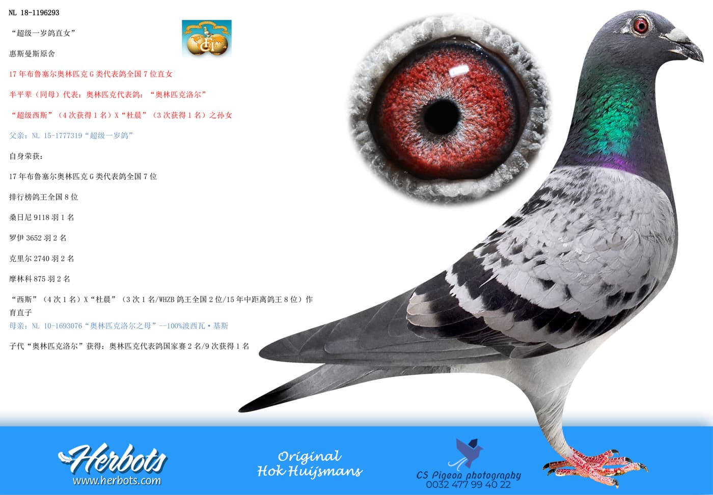 其母“森斯”荣获: 鸽王6位和9位
