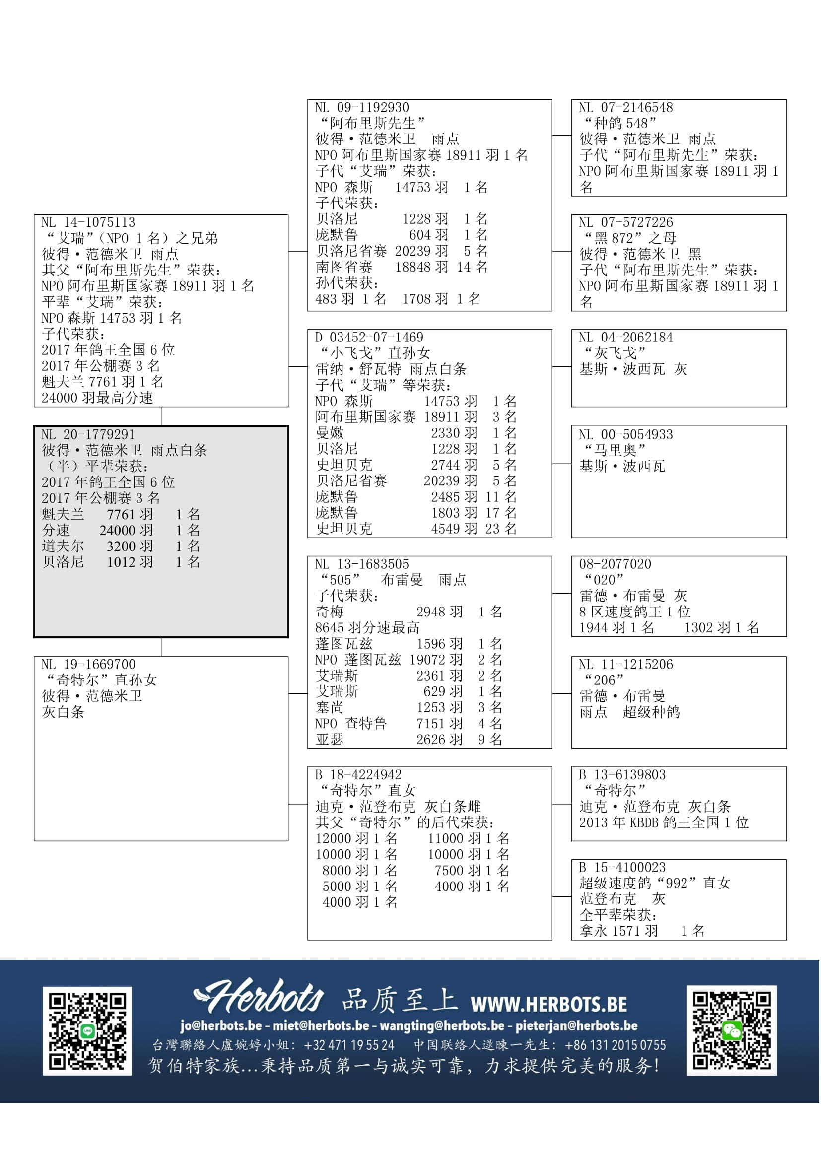 “020” (Afd 8 短距离鸽王1位 – 4 次1名 – “普拉斯特”直子 - 贺尔曼) x “206” (“杨之姐妹”直女)作出