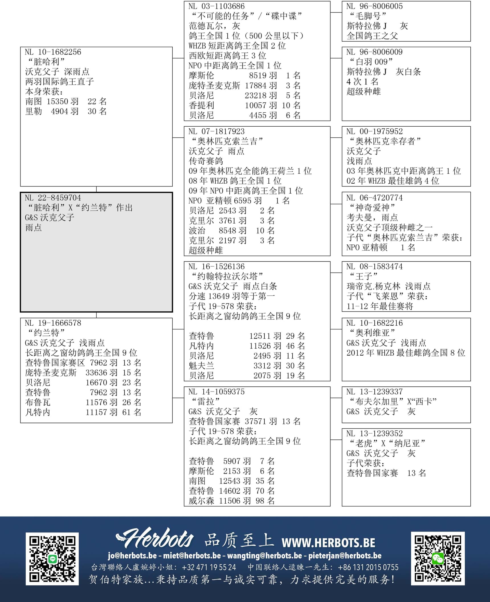短距离鸽王全国2位 – WEN 多特蒙德鸽王3位 –