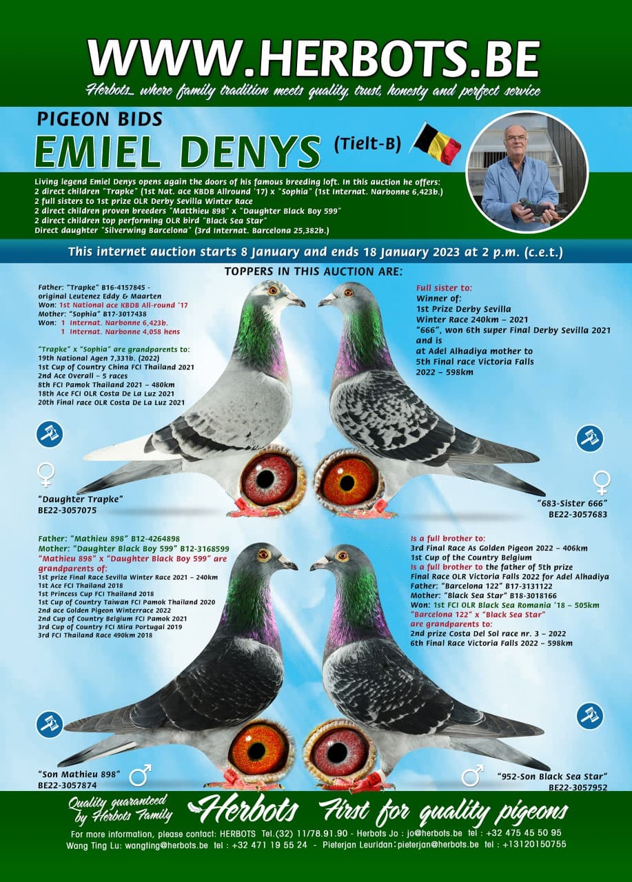 DENYS EMIEL 艾米尔·丹尼斯BREAKING NEWS: Out the same mother, "Black Sea Star", won Emiel a few days ago the 26th place Final race OLR Thailand Masters 2023 against 2,306b. on 530km