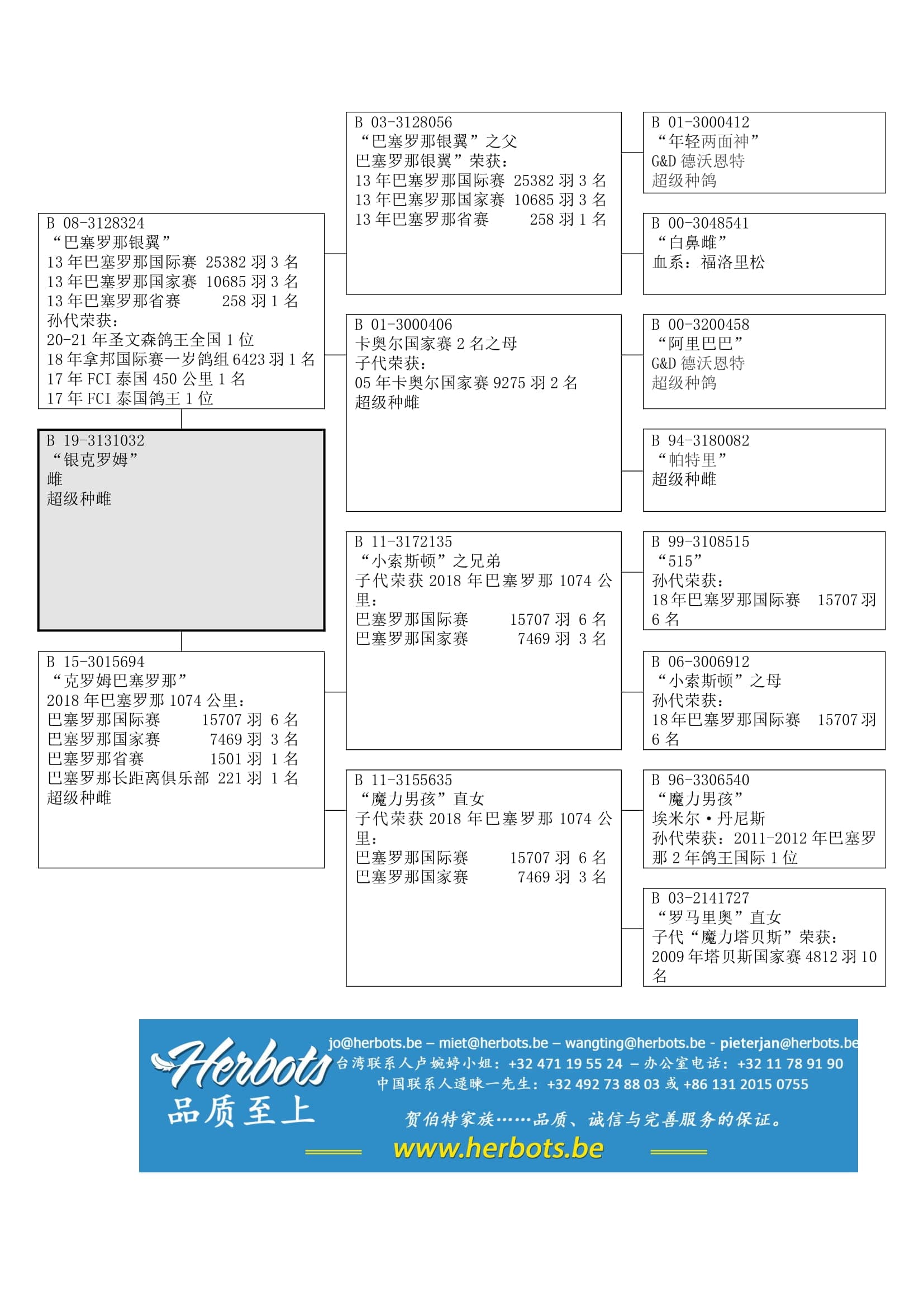 – 埃及比利时国家杯620公里决赛1名- 17年科拉比亚FCI公棚鸽王2位