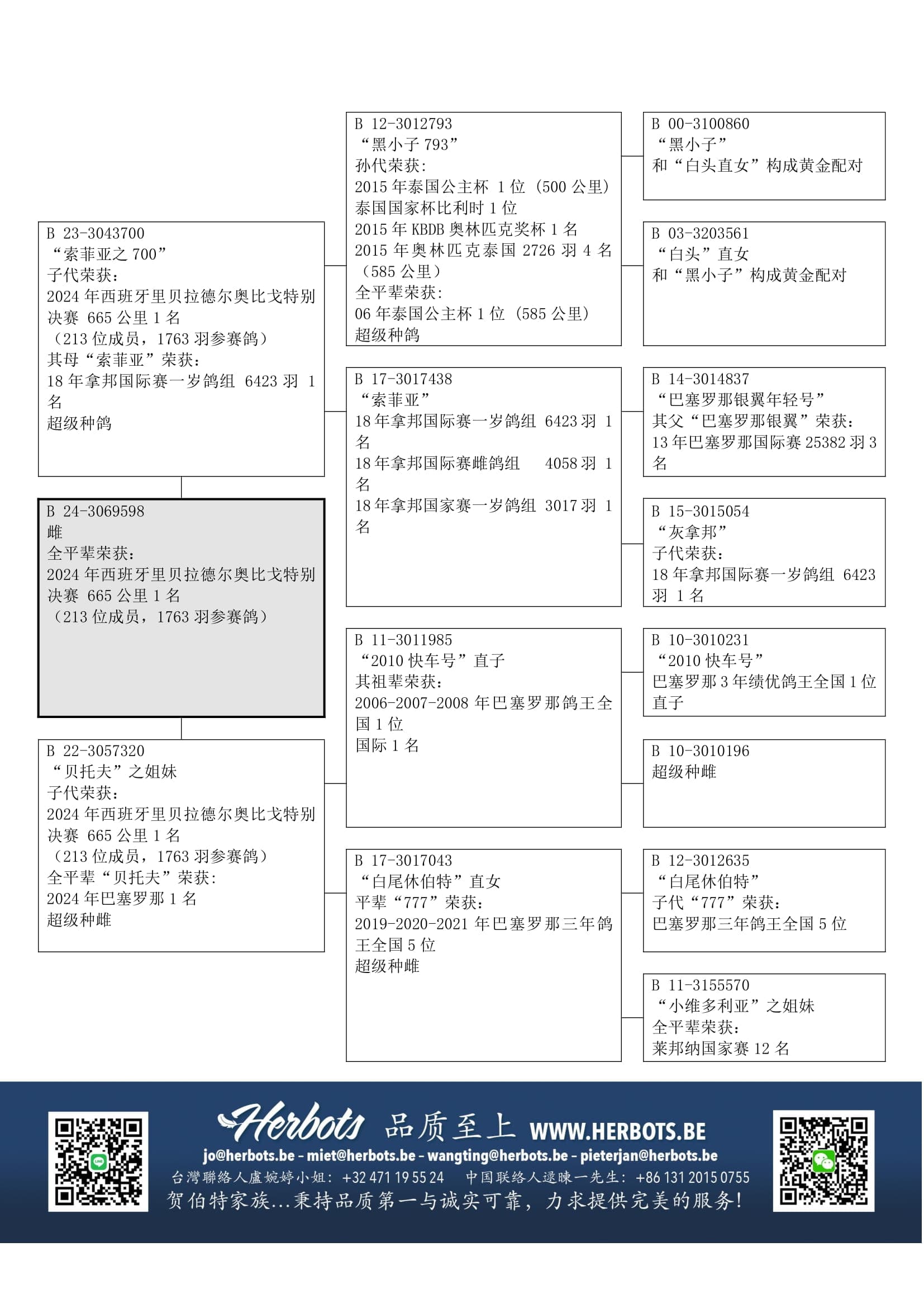 “B11-3011985” (06-07-08年巴塞罗那鸽王全国1位直孙) x “B17-3017043” (19-20-21年 巴塞罗那鸽王全国5位之姐妹)作出