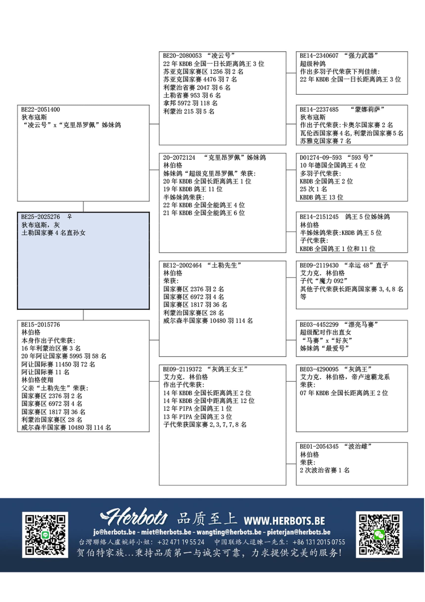 “灰鸽王女王” B09-2119372 作出子代荣获: