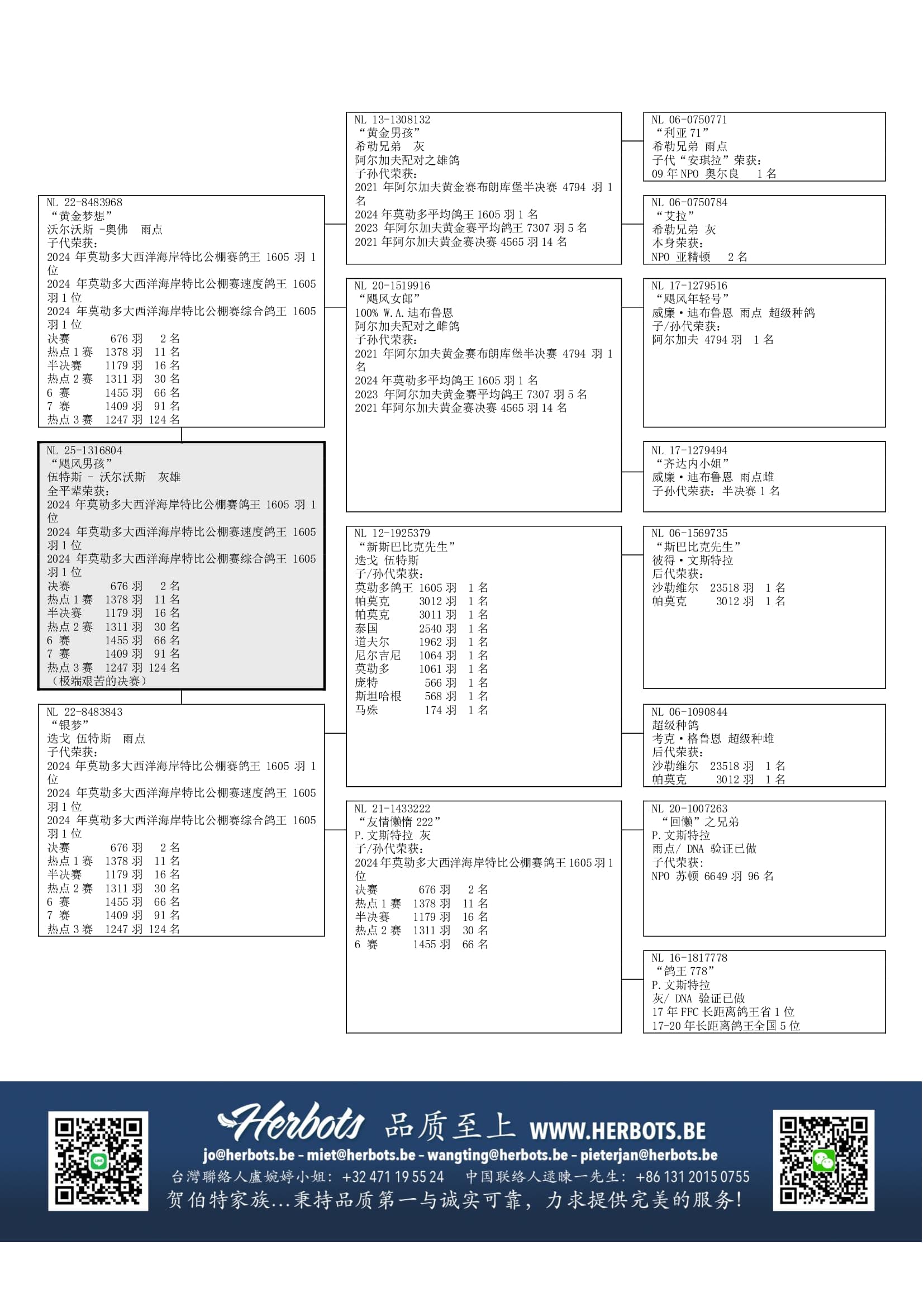 莫勒多鸽王 1.605羽1名 – 帕莫克 3.012羽1名 –