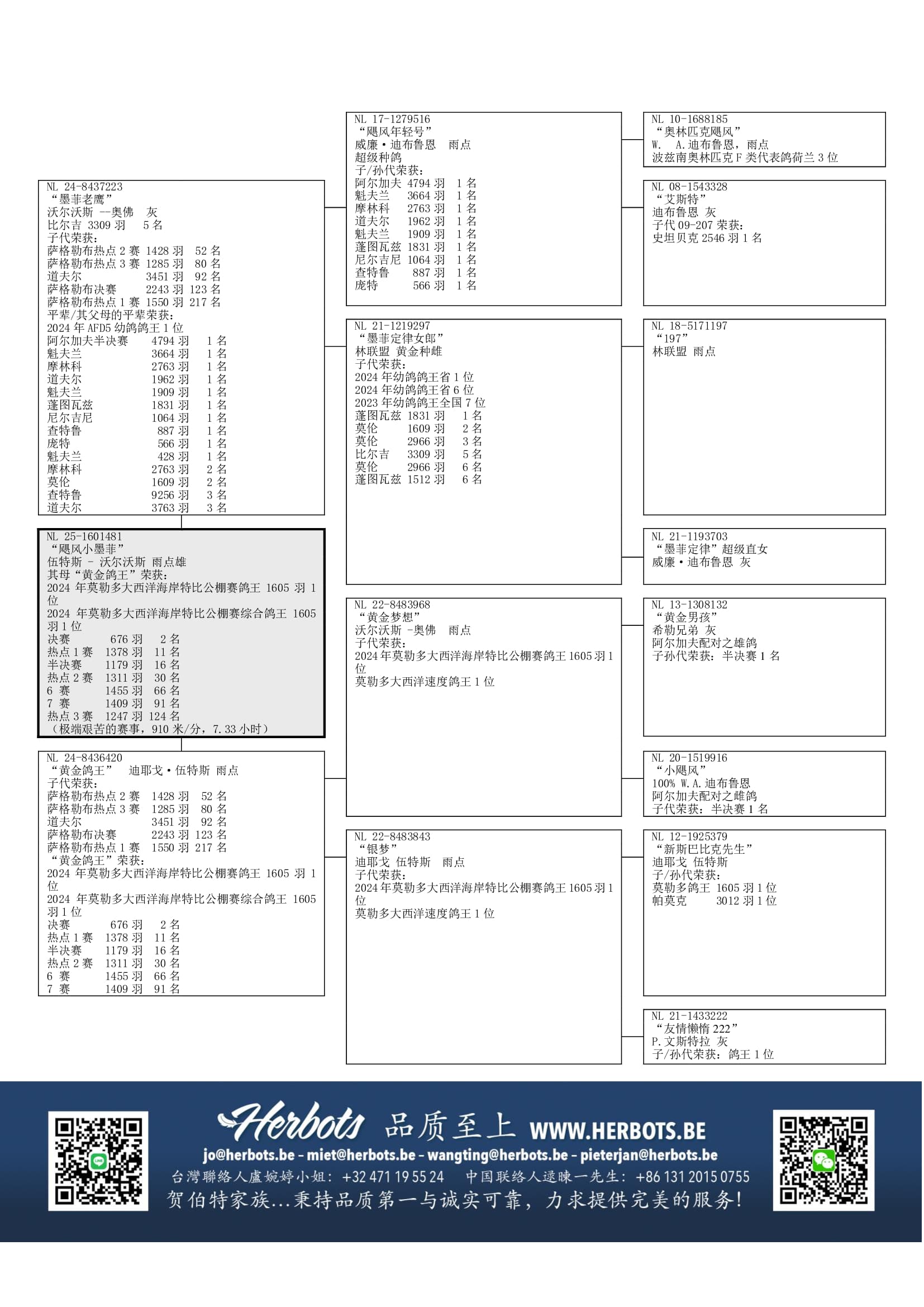 2024年幼鸽鸽王省1位 – 2024年幼鸽鸽王省6位 – 2023年幼鸽鸽王全国7位