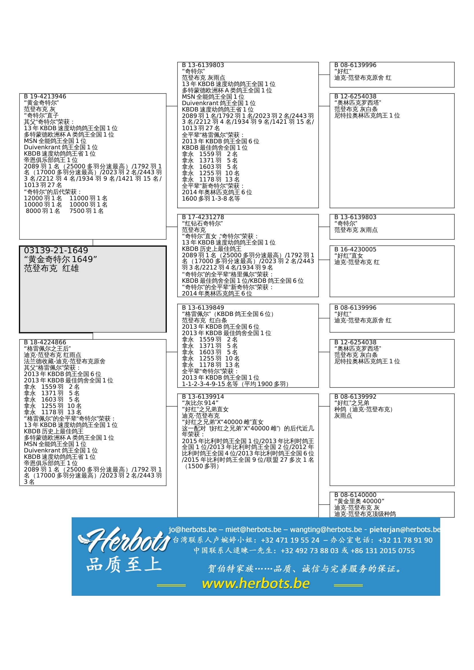 全平辈代表: “奇特尔” (KBDB 速度鸽王全国1位) , “新奇特尔” (奥林匹克代表鸽6位) 等等