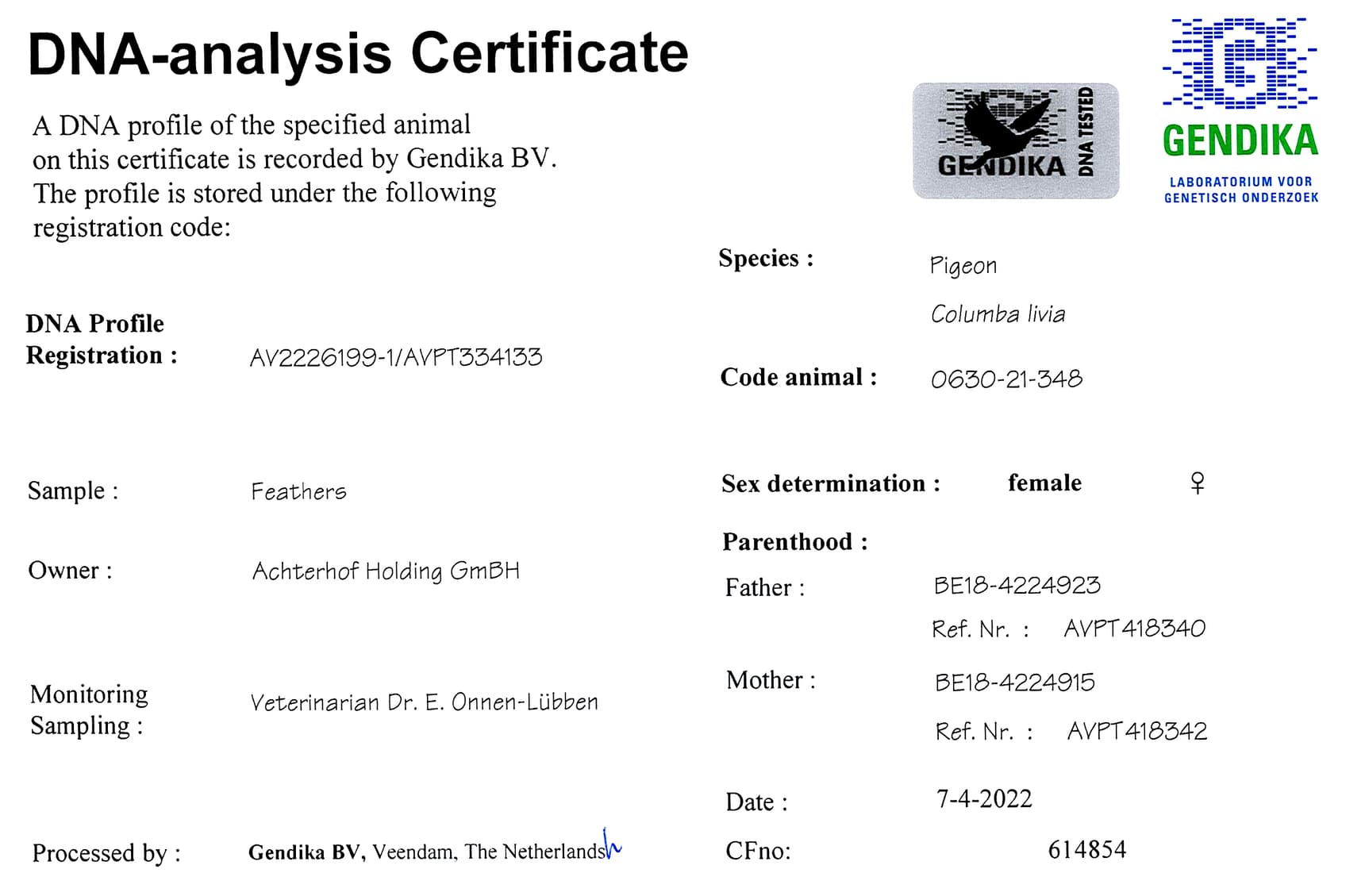 世界铭鸽 “奇特尔” x “超级速度鸽直女”直子