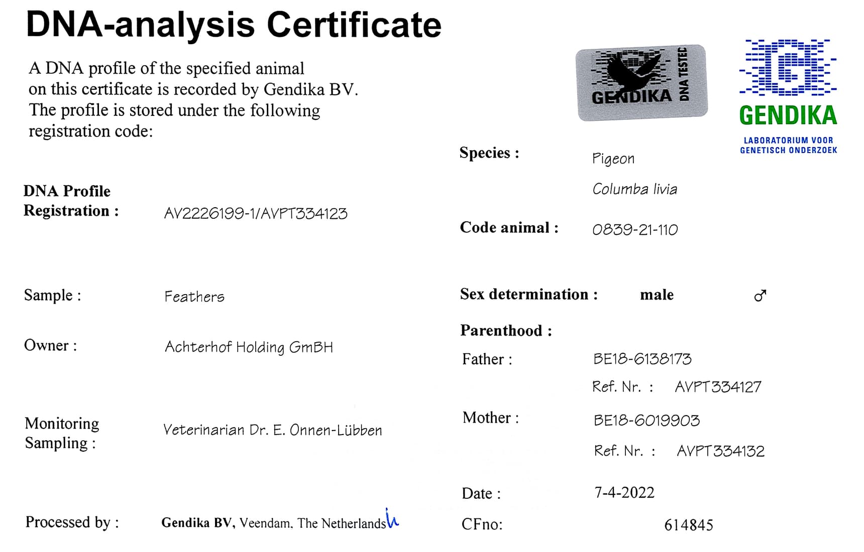 “奇特尔” (KBDB鸽王全国1位)