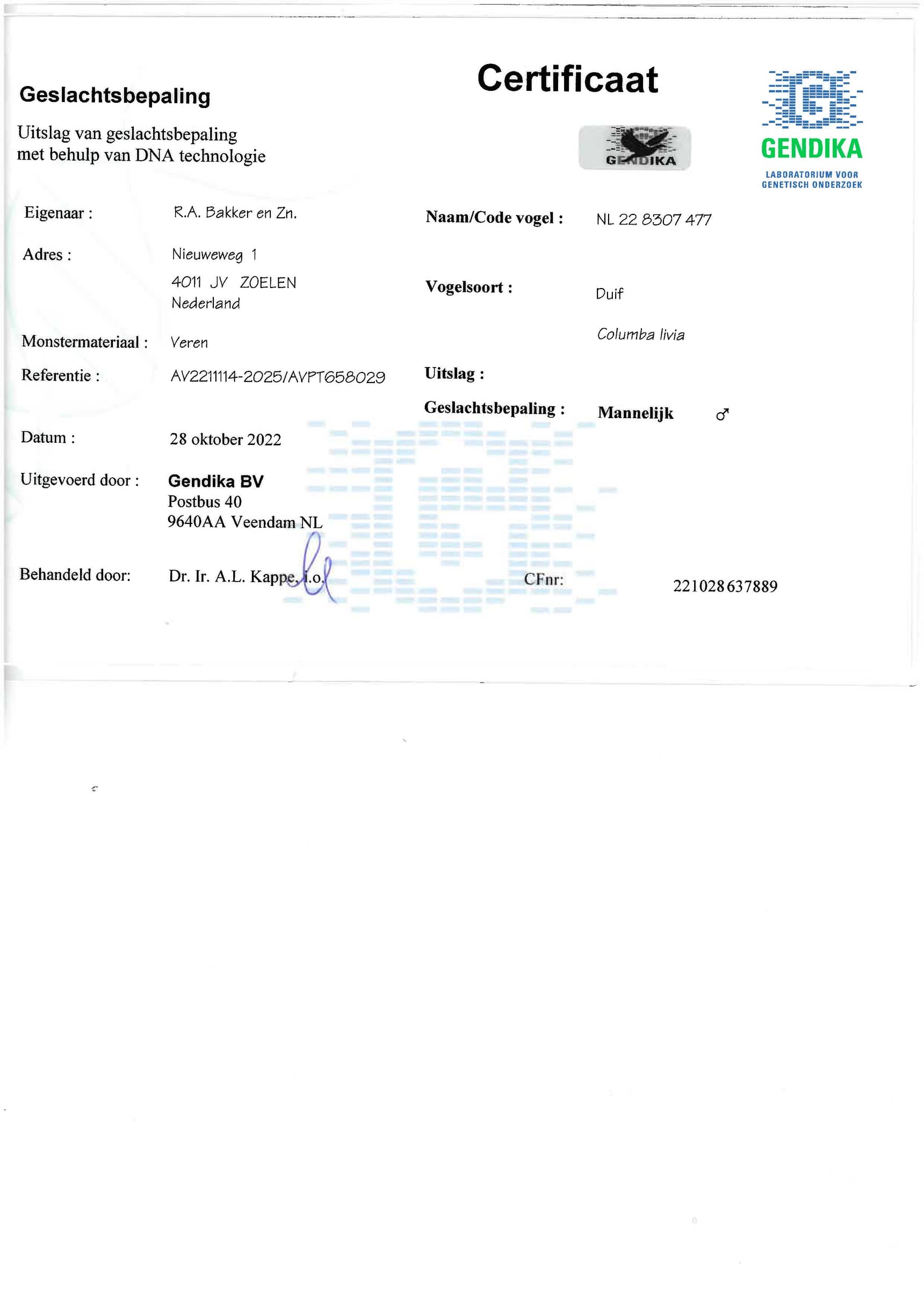 冠军鸽 “热尔米尼” x “玛丽卡”作出