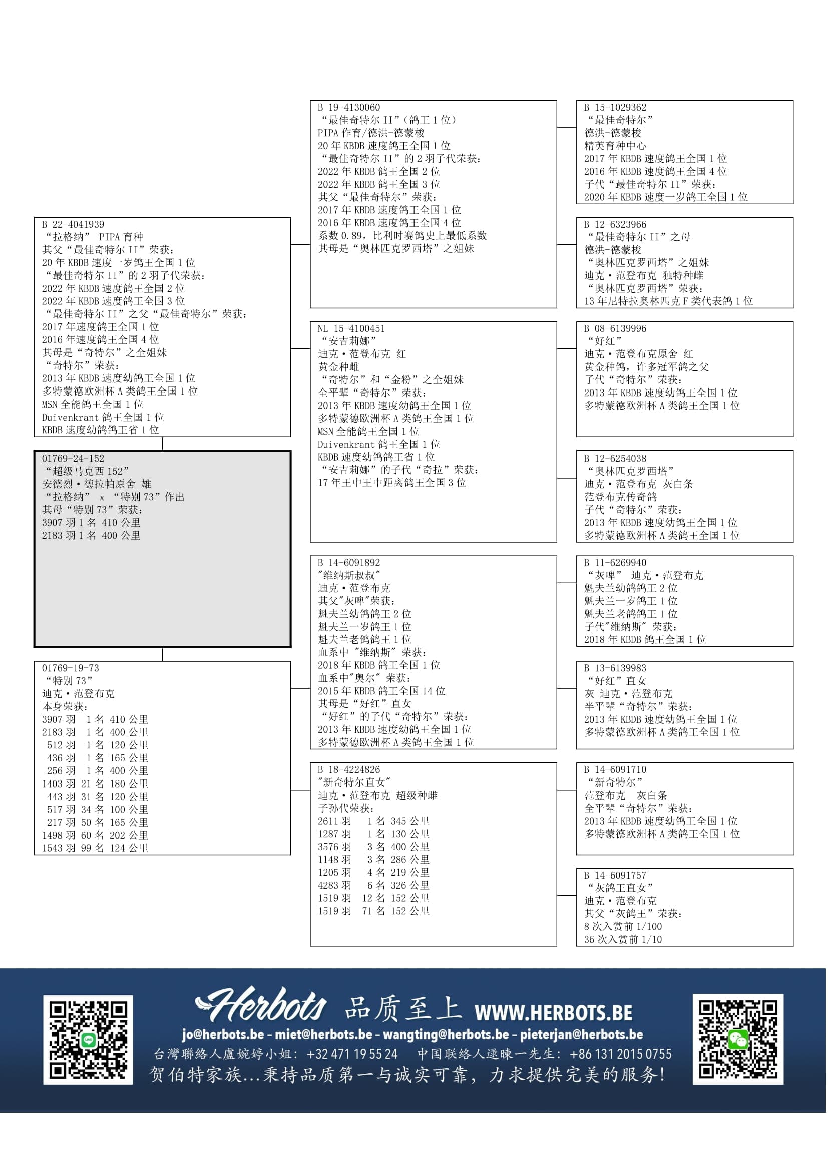 范登布克铭鸽如“奇特尔”,“格雷佩尔”, “金粉”和“新奇特尔”等之全姐妹