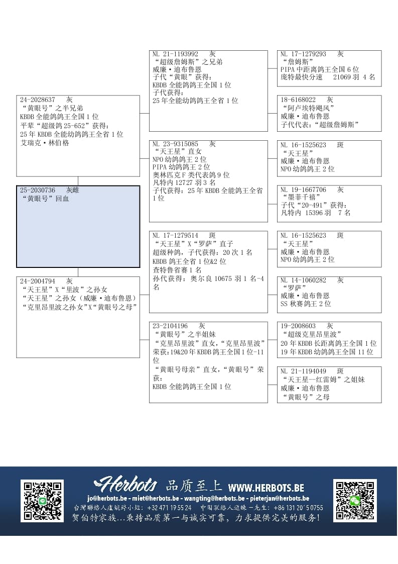 半平辈 (同父)名鸽 “黄眼号”获得: