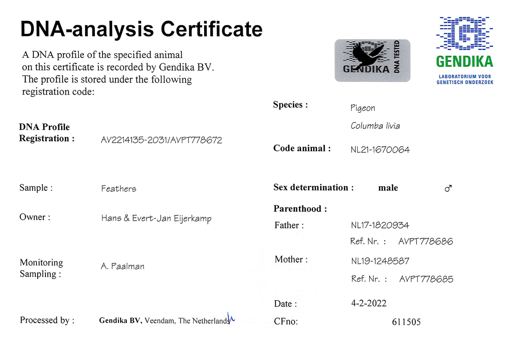 其父母平辈荣获: NPO 南图 5,901羽1名以及中距离鸽王全国2位