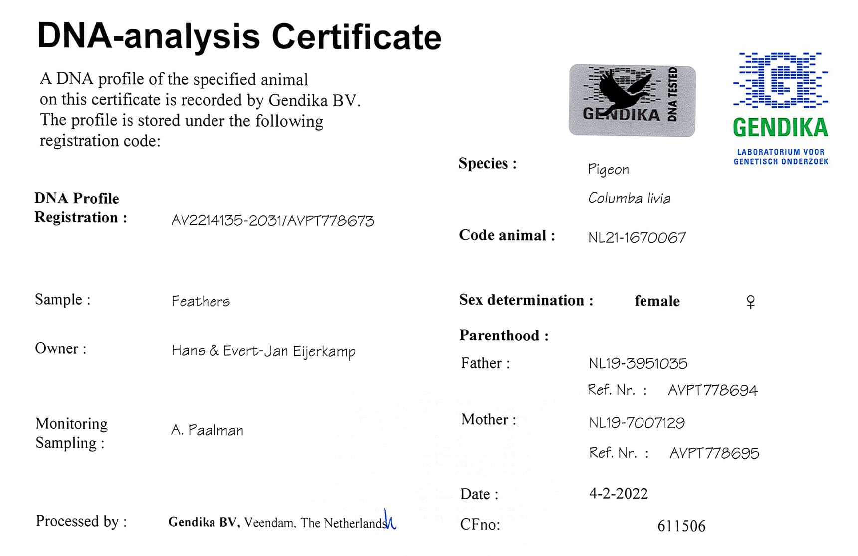冠军雌鸽!  荣获: 4 次前 1/1000 !