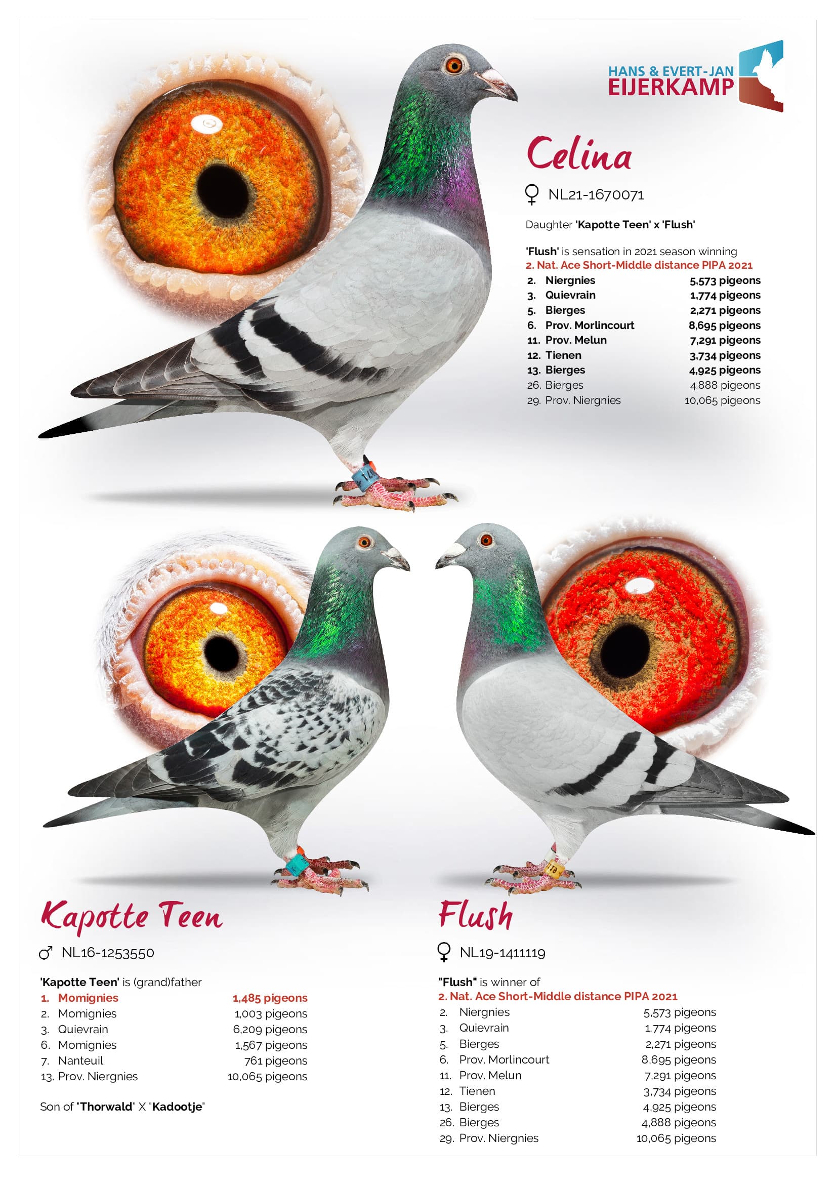 “奥林匹克 003”直子) x “卡度雌” (2 羽鸽王全国1位之祖母 – “新奥林匹克”直女) 直子