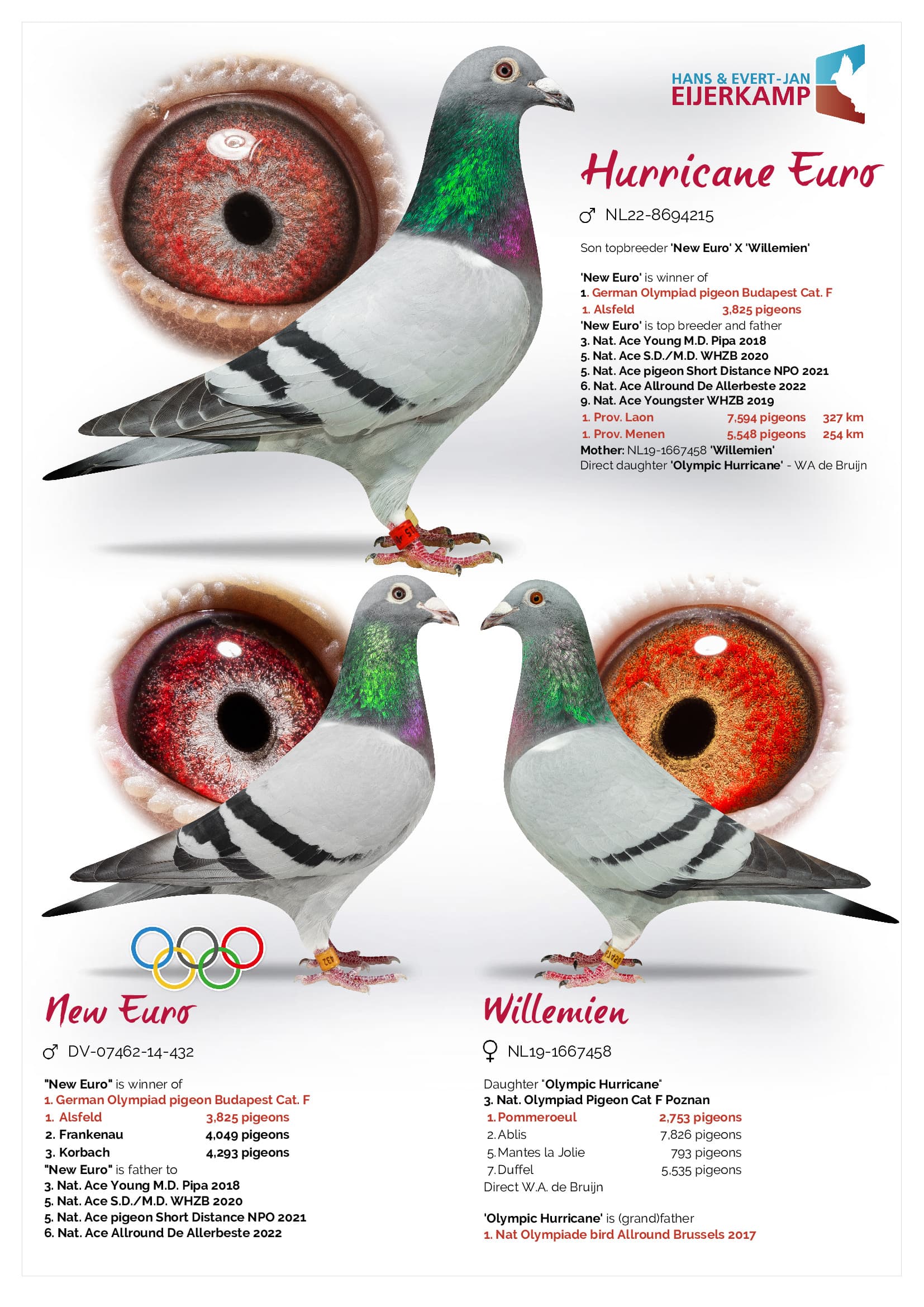 “新欧元”是一羽顶级种鸽,子代荣获: