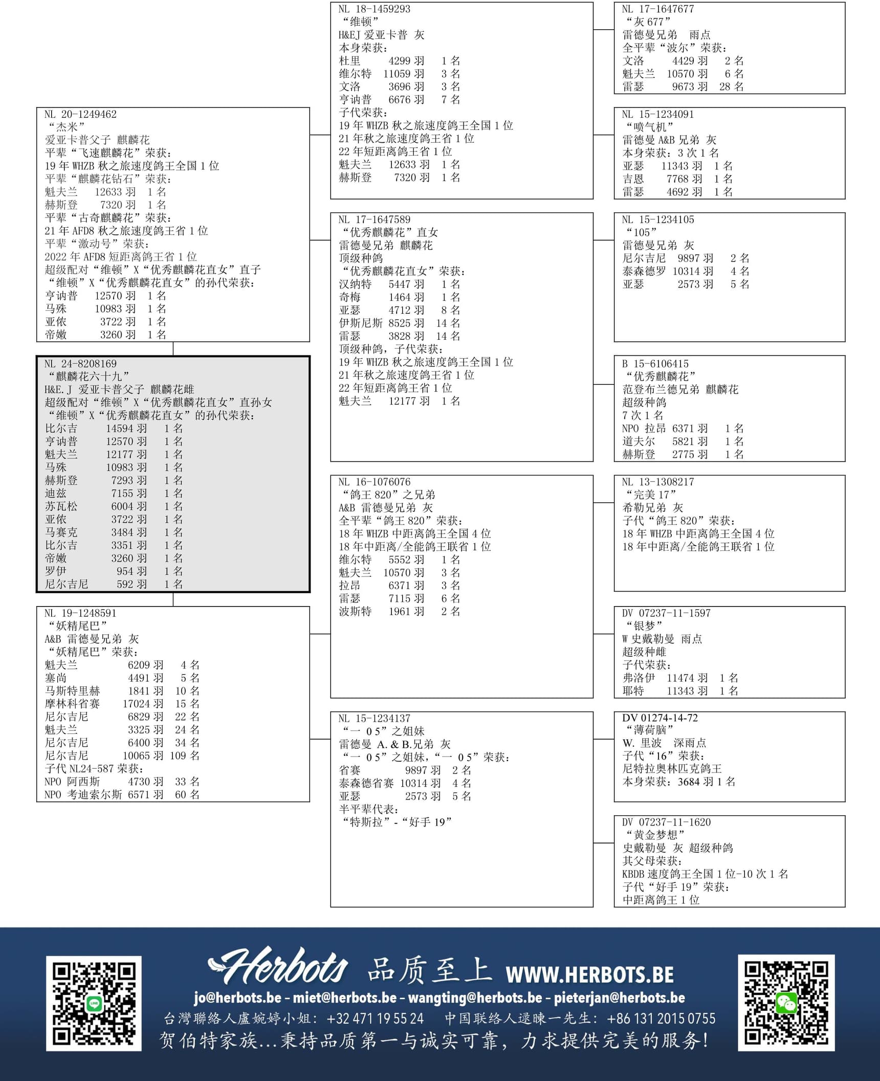 6,829羽22名 – 魁夫兰 3,325羽24名 – 尼尔吉尼 6,400羽