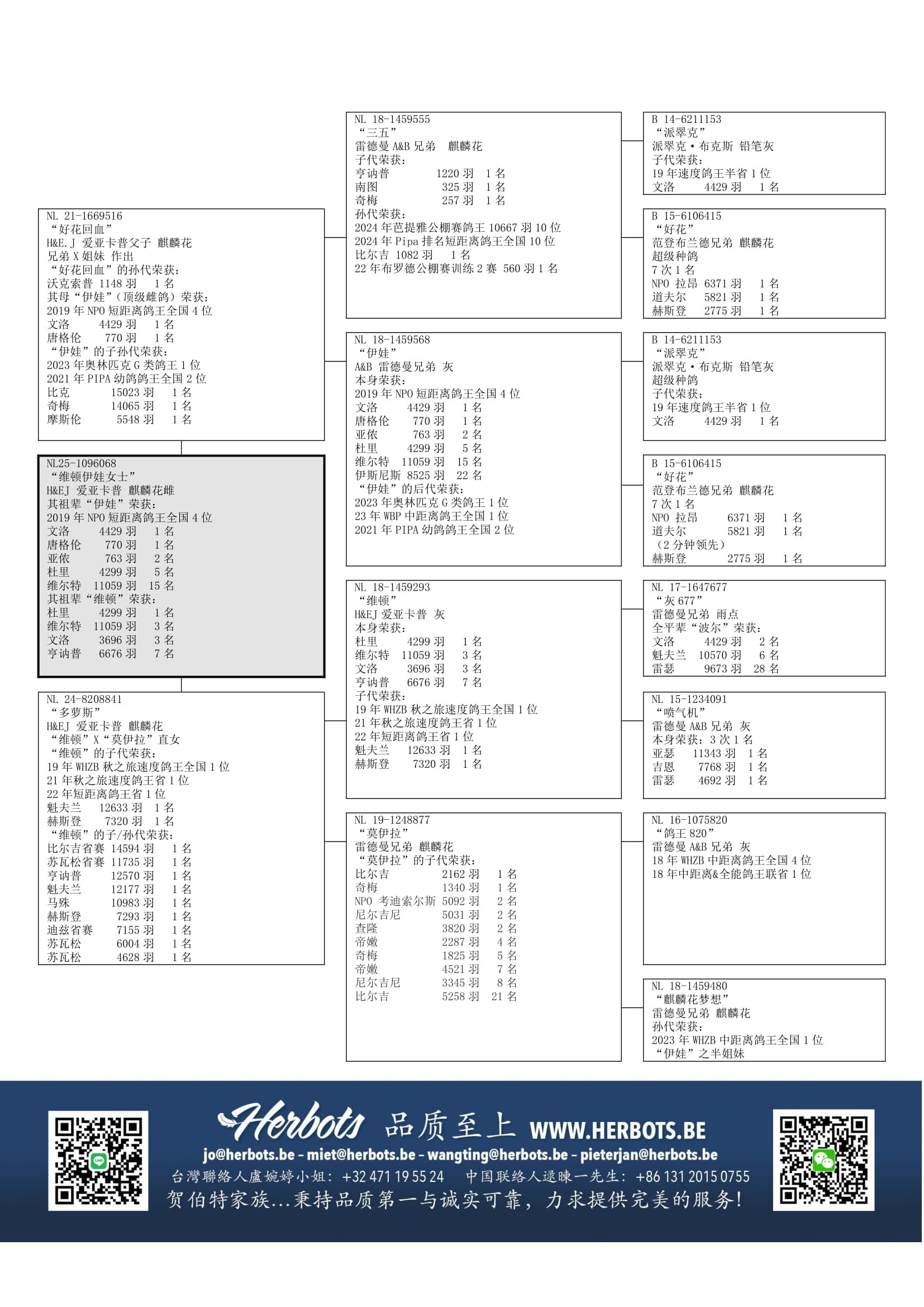 “三五” (“好花”直子) x “伊娃” (2019年NPO短距离鸽王全国4位 – 后代荣获: 2023年奥林匹克G类鸽王1位 – 23年中距离世界 最佳鸽鸽王全国1位 – Pipa排名幼鸽鸽王全国2位)作出