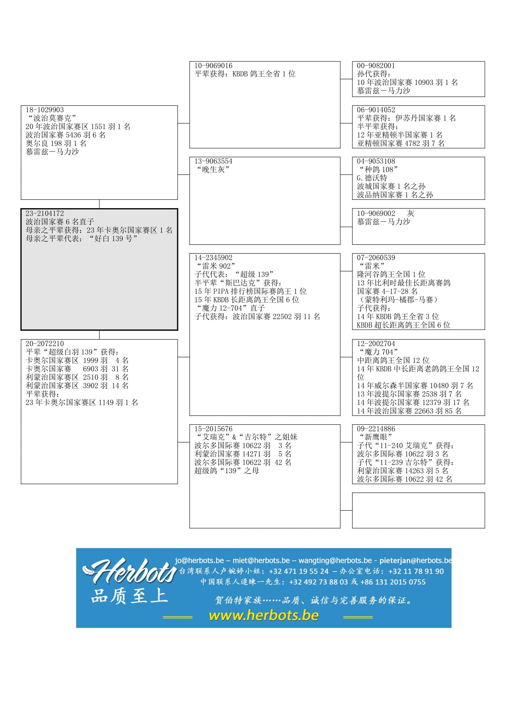 “B10-9069016” (鸽王全省1位之兄弟)x “B13-9063554” (血统:G.德沃特)作育