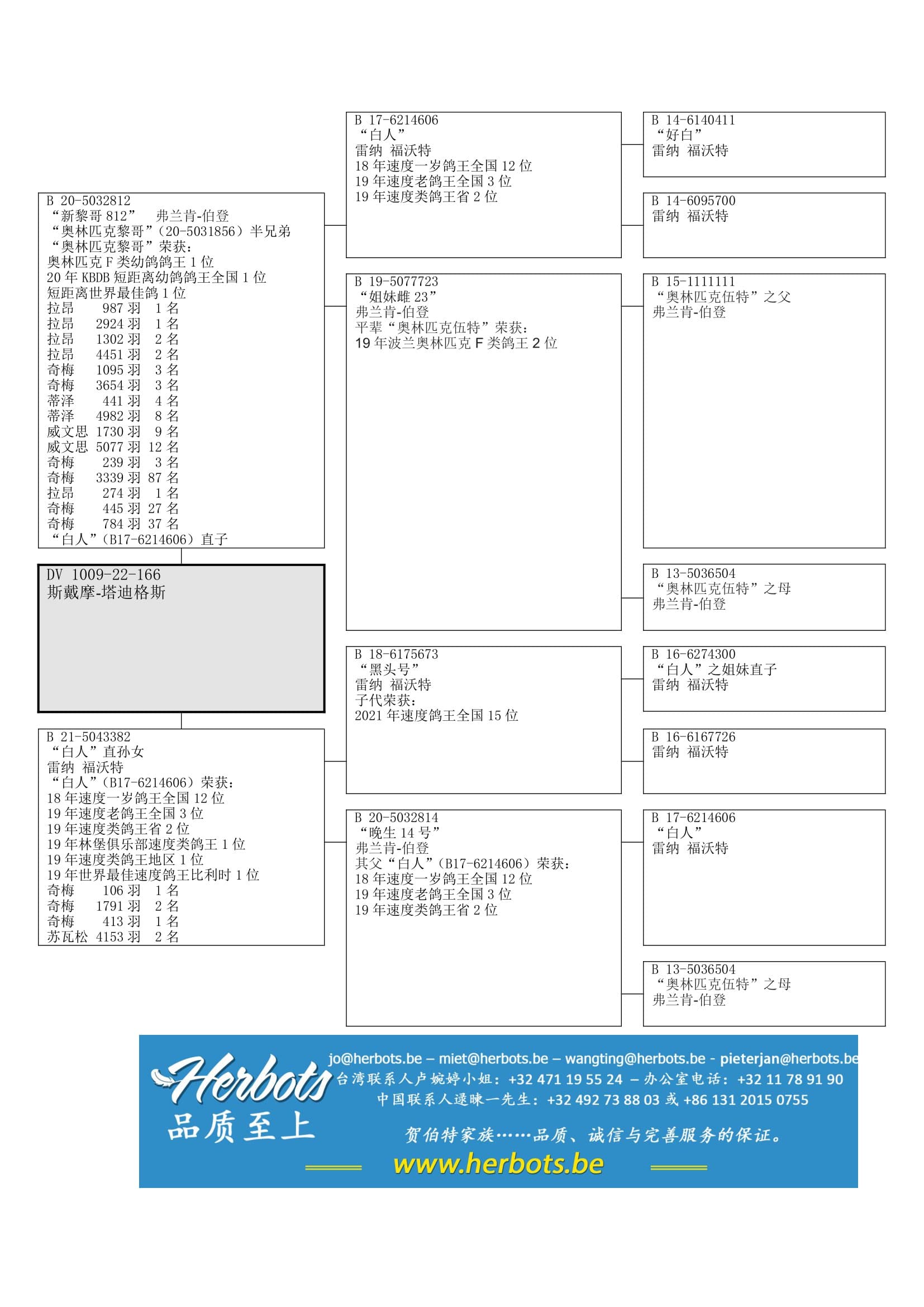 奥林匹克F类幼鸽鸽王1位 – 20年KBDB短距离鸽王全国1位 – 20年世界短距离最佳鸽1位