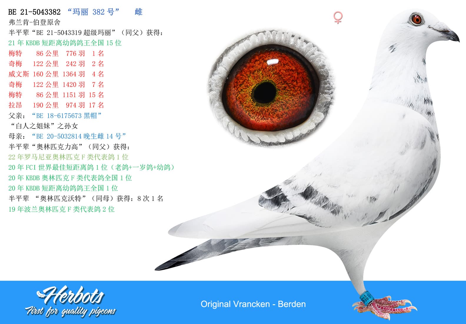 世界铭鸽“奥林匹克黎哥” B20-6031856 x “白人直孙女” (“白人” 是“奥林匹克黎哥”之父)直孙