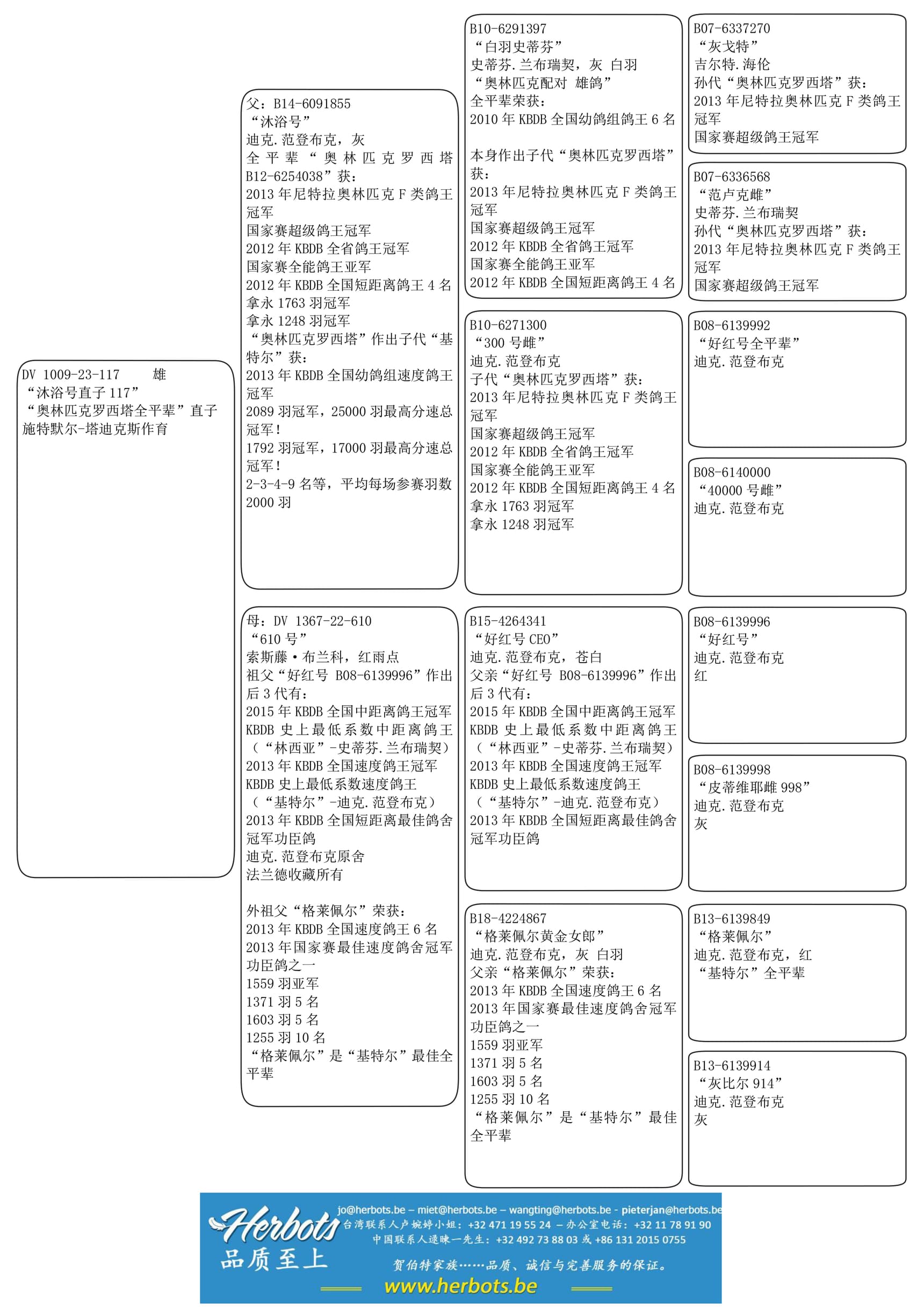 作出子代有许多范登布克鸽舍大铭鸽,比如: