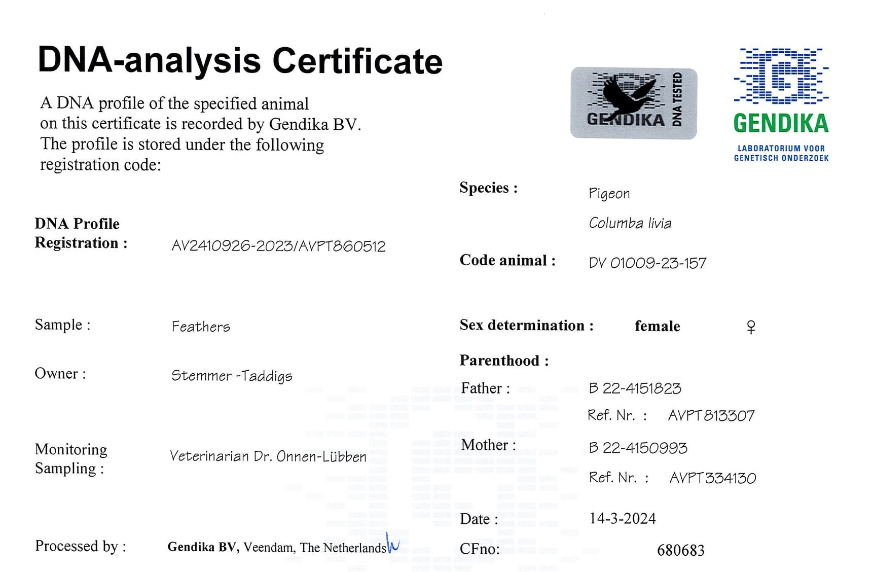 冠军鸽“保时捷王子” x “露娜”直子