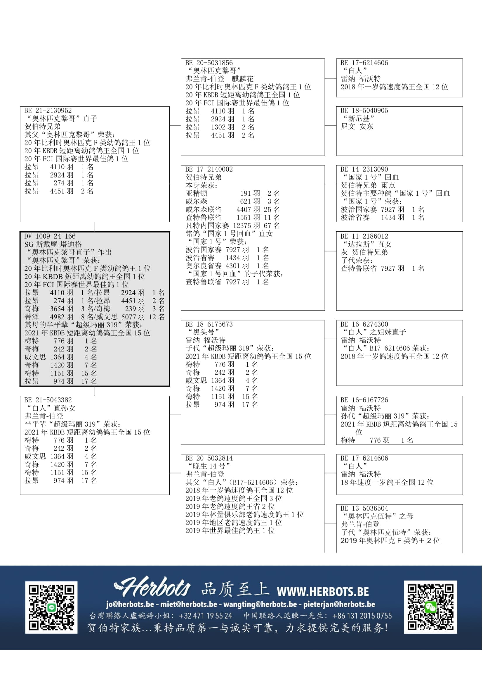 “奥林匹克黎哥”的后代在全球各鸽舍各种比赛中翔绩优异