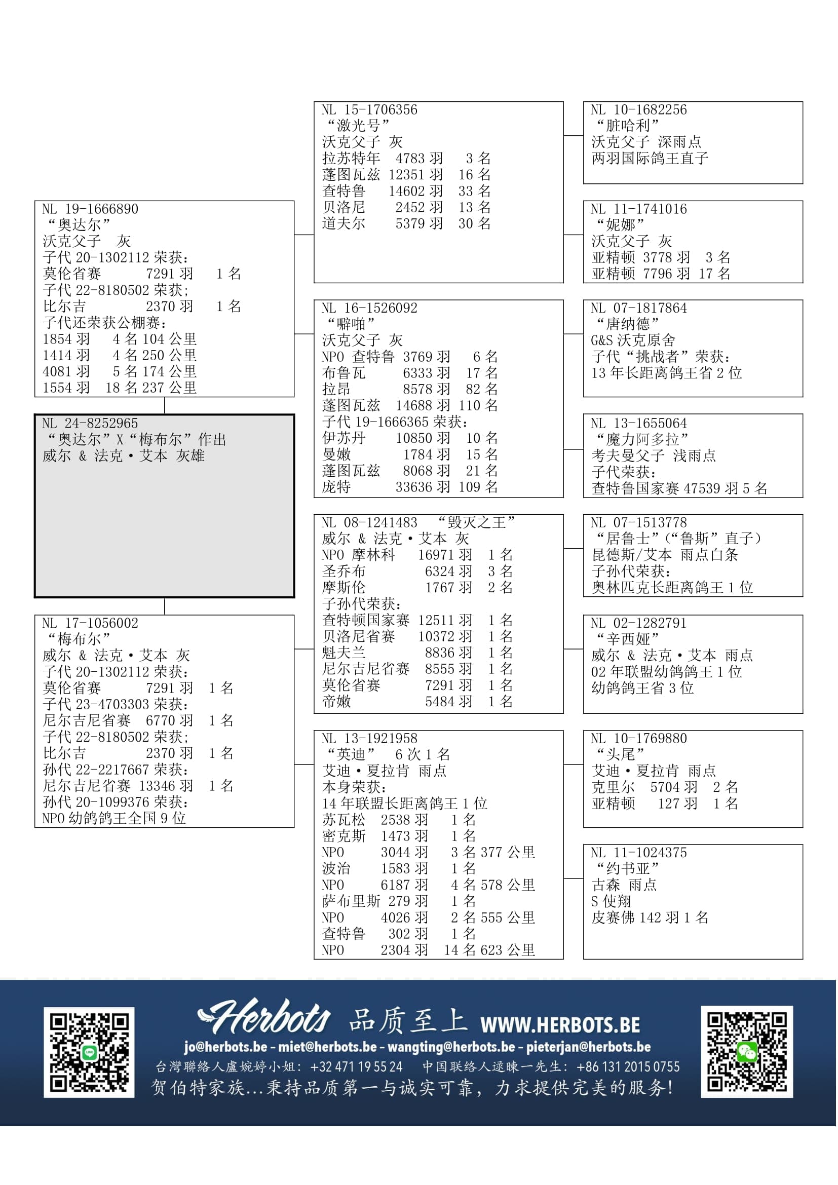 “毁灭之王” x “英迪” (作出多代冠军鸽) 直女