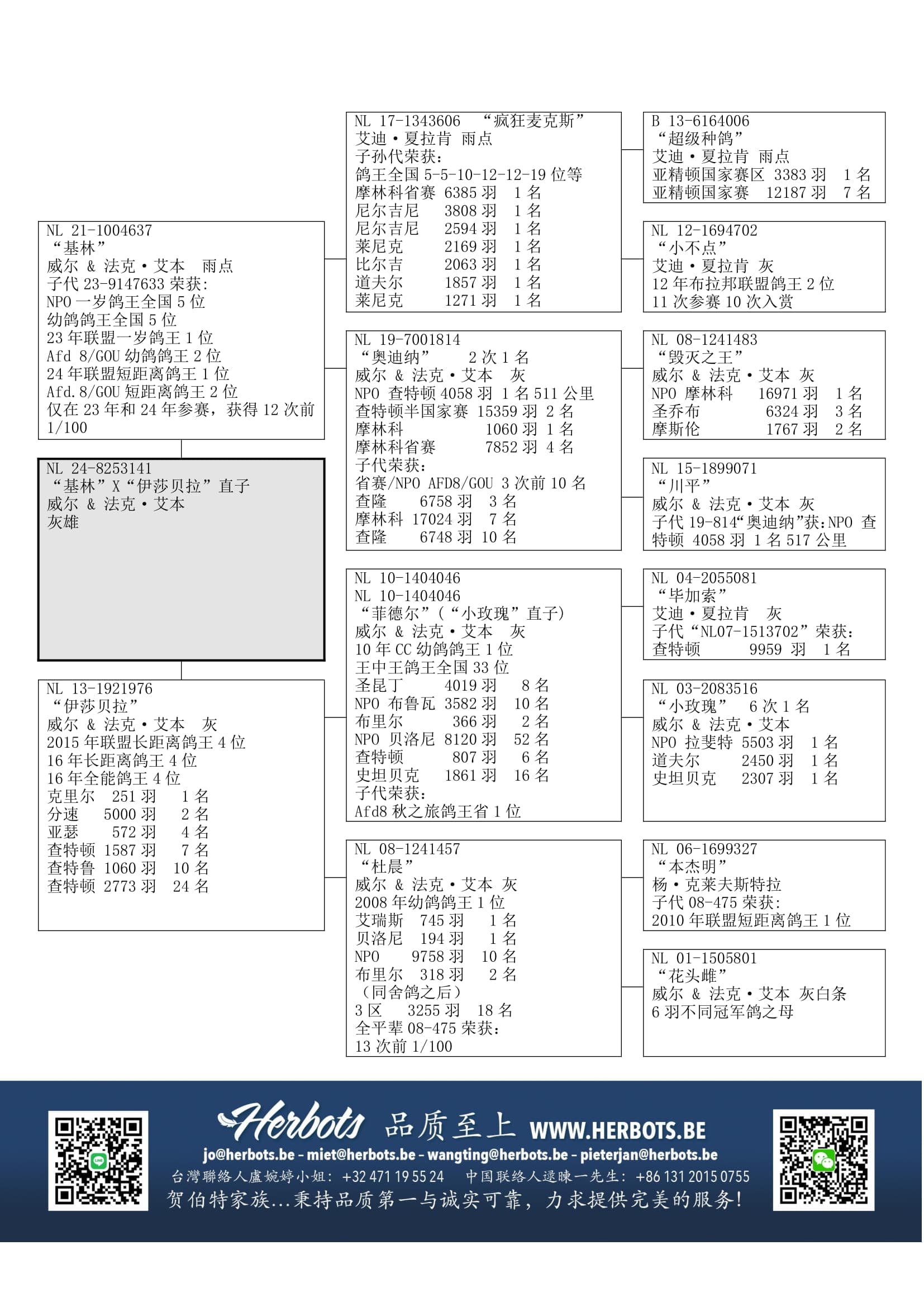 “疯狂麦克斯” (顶级种鸽) x “奥迪纳” (NPO 1名;是 “莱纳斯”之半姐妹) 直子