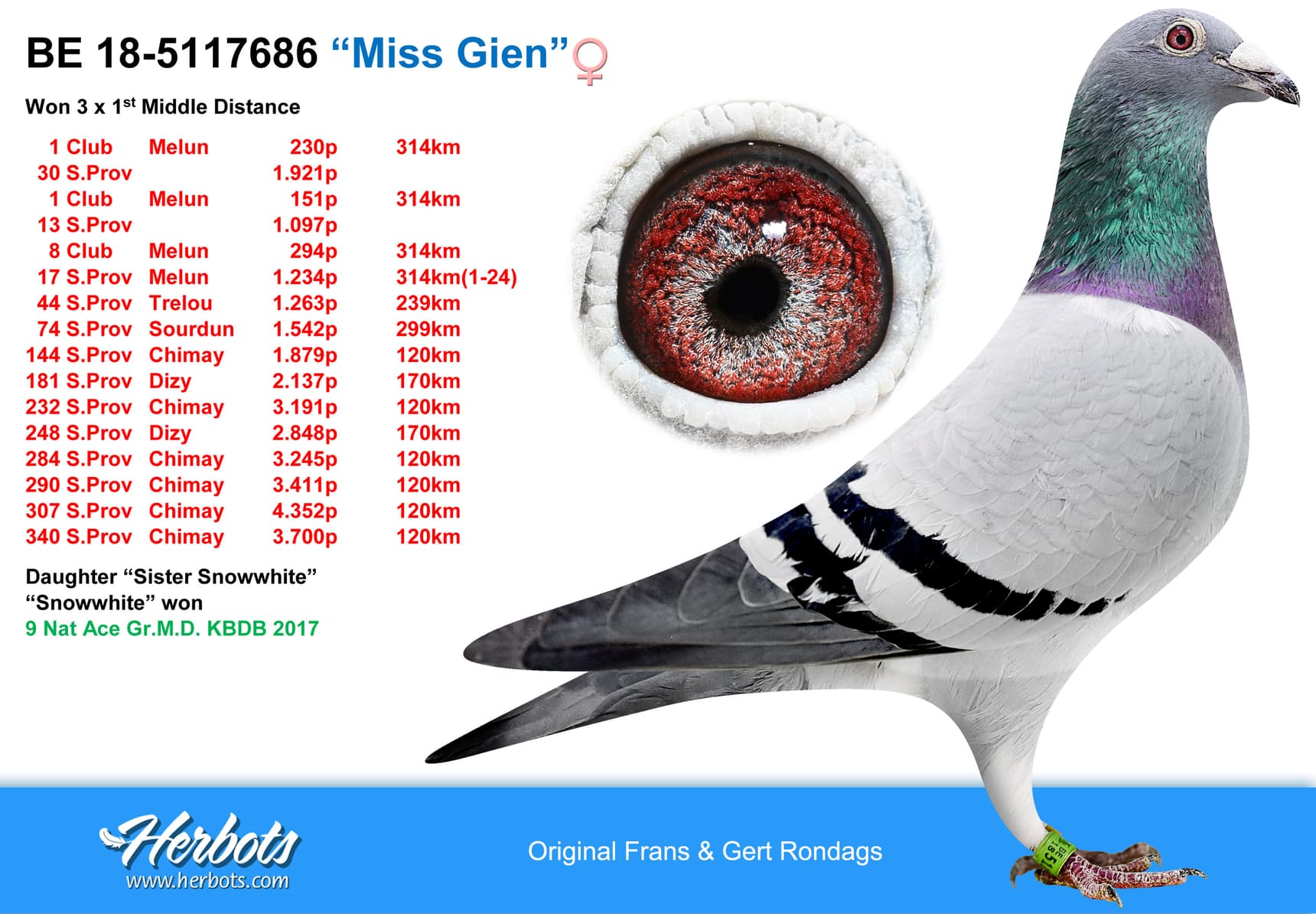 2017年KBDB中长距离鸽王全国9位