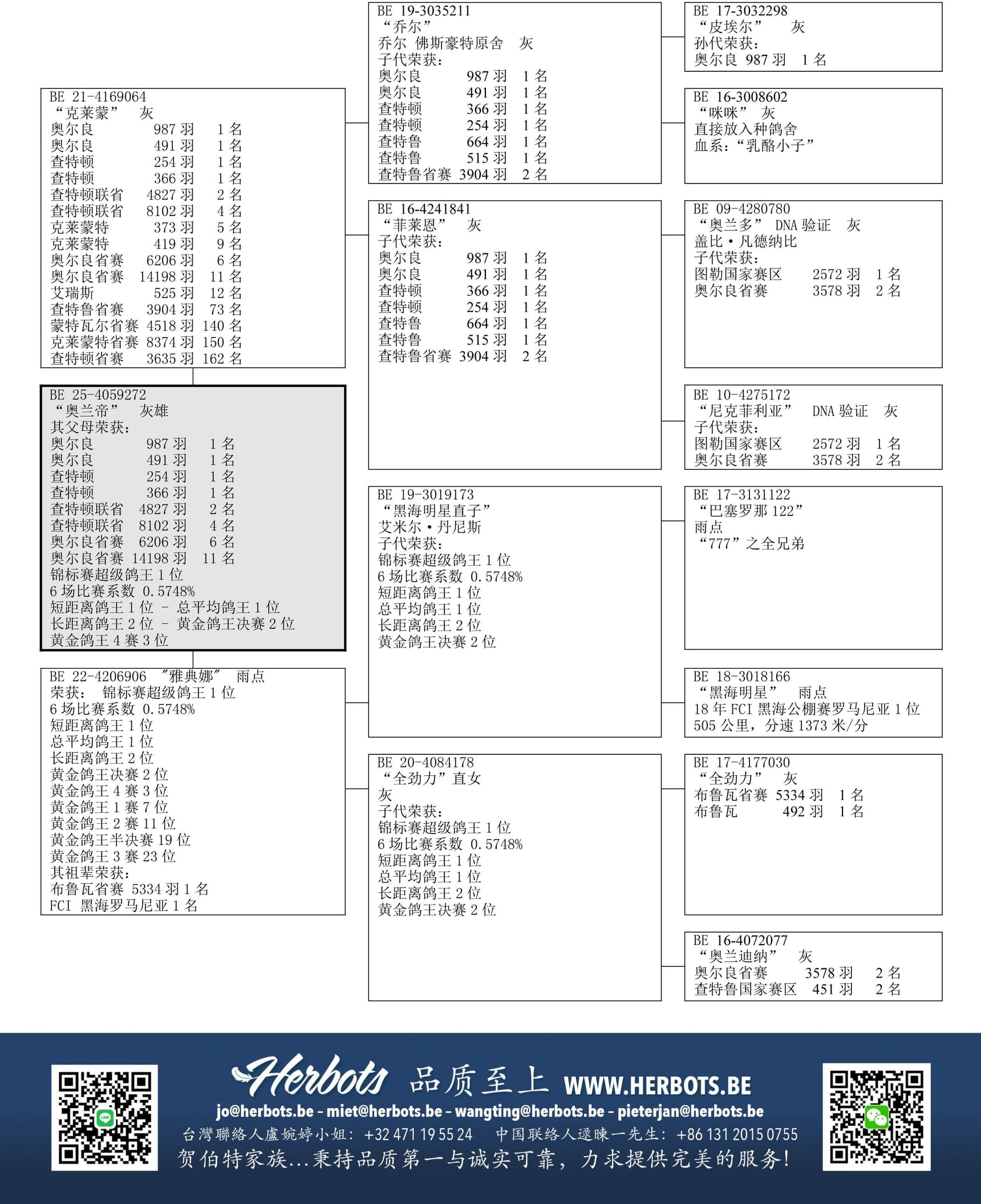 短距离鸽王1位 – 总平均鸽王1位 – 长距离鸽王2位 –