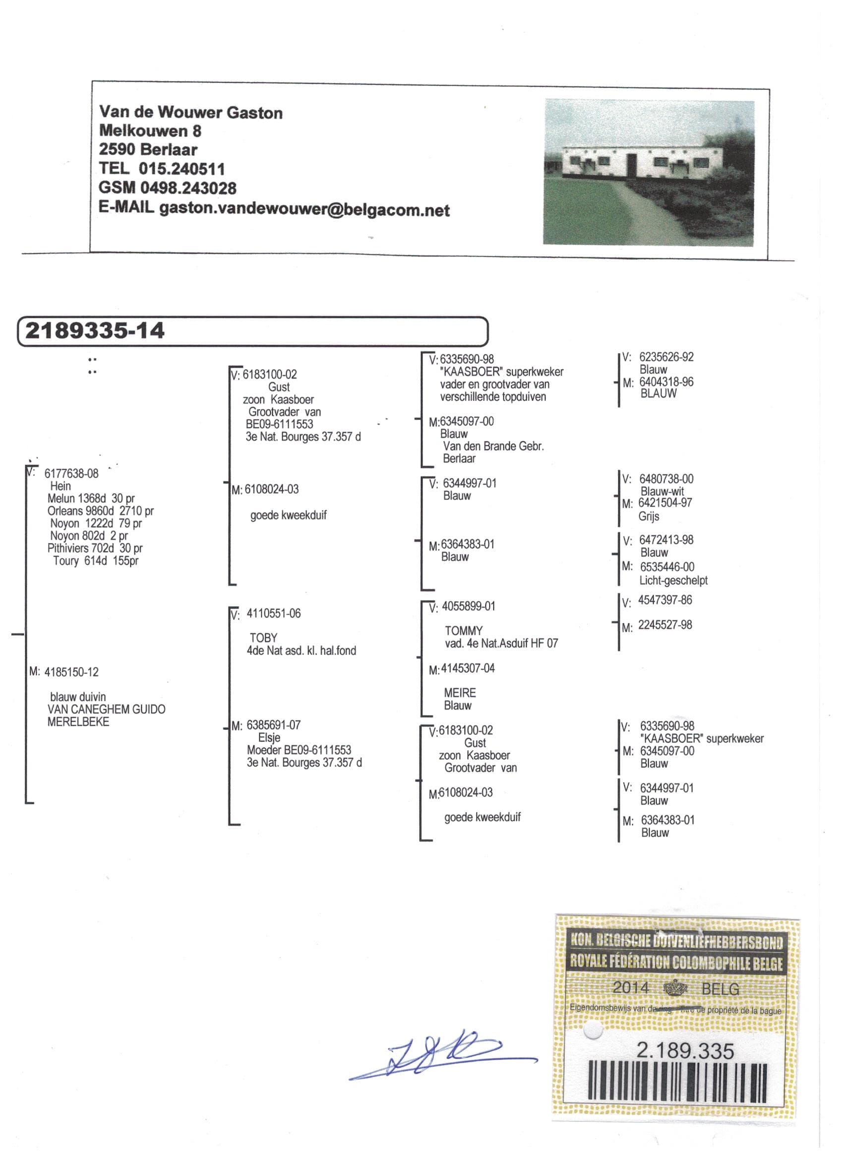 100% 葛斯顿·范德瓦尔实力非凡育种血系:“海因”, “乔汉” (“劳拉”之兄弟) 以及 “芭芭拉”
