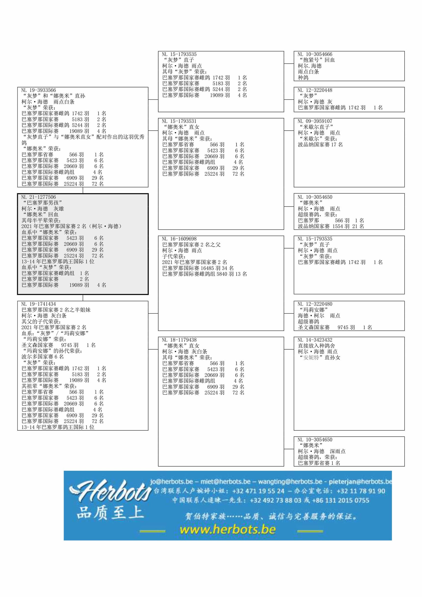 “灰梦直子” (“灰梦” 荣获巴塞罗那国家赛雌鸽组1名 – 国际赛 19,089羽4名) x “娜奥米直女” (是2个赛季巴塞罗那最佳鸽 . 荣获 巴塞罗那国际赛6名/国家赛29名.) 作出