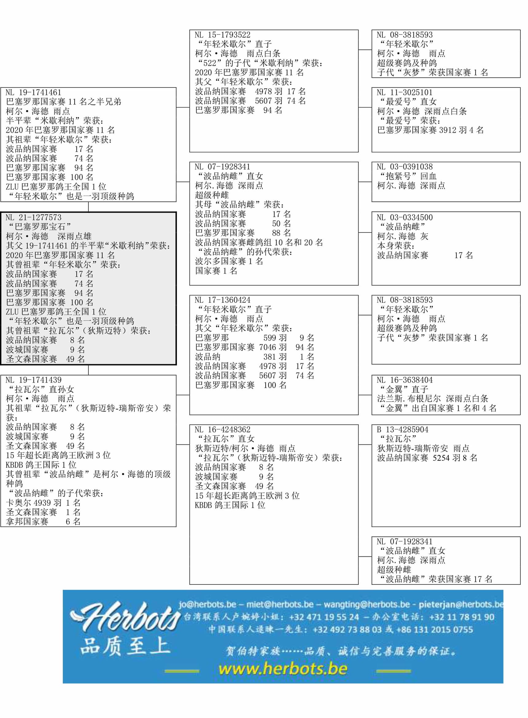 其祖辈“年轻米歇尔”荣获:ZLU 巴塞罗那鸽王全国1位 – 波品纳国家赛17名和74名 – 巴塞罗那国家赛94名和100名)
