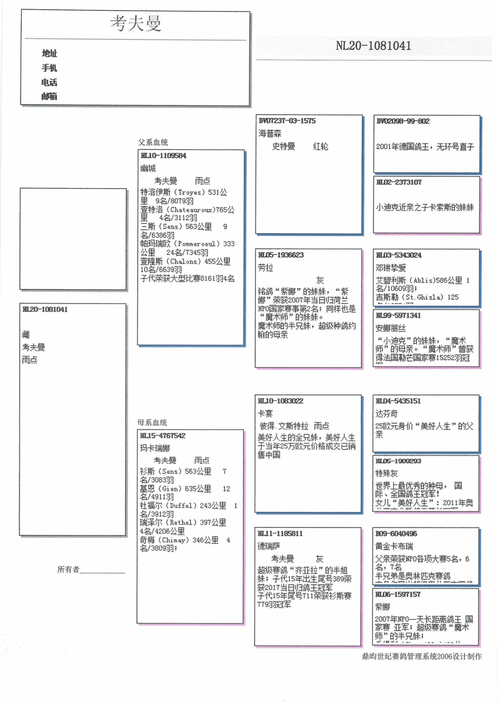 带DNA检验证书“幽城直女” 各类大型比赛4名/3112羽9名/8079羽9名/6386羽10名/6639羽“玛卡瑞娜”直女, 各类大型比赛1名/3912羽4名/4206羽4名/3809羽7名/3083羽半姐妹: 荣获布克斯特尔8161羽第4名