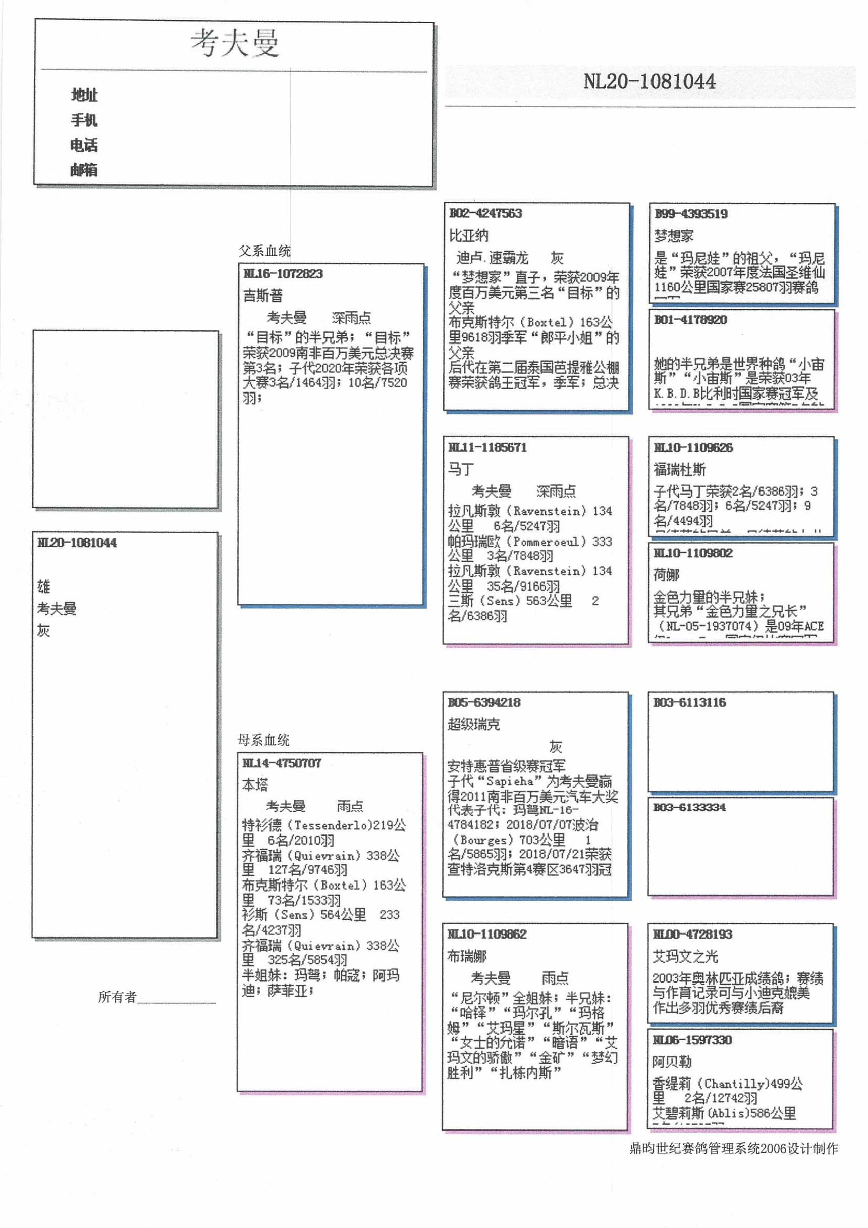 带DNA检验证书孙代鸽出自”比亚纳”X”马丁”和”超级瑞克”X”布瑞纳”