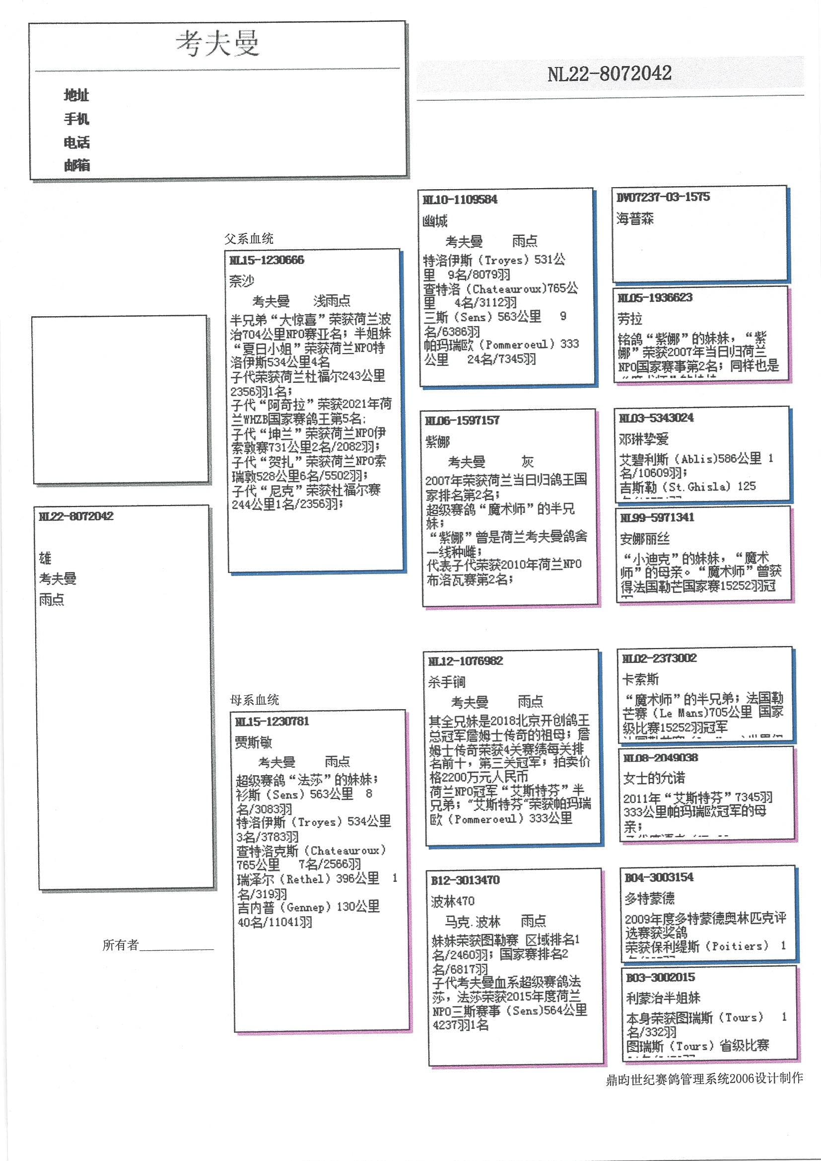 “幽城” x “紫娜” (07年一日长距离鸽王全国2位) 直子
