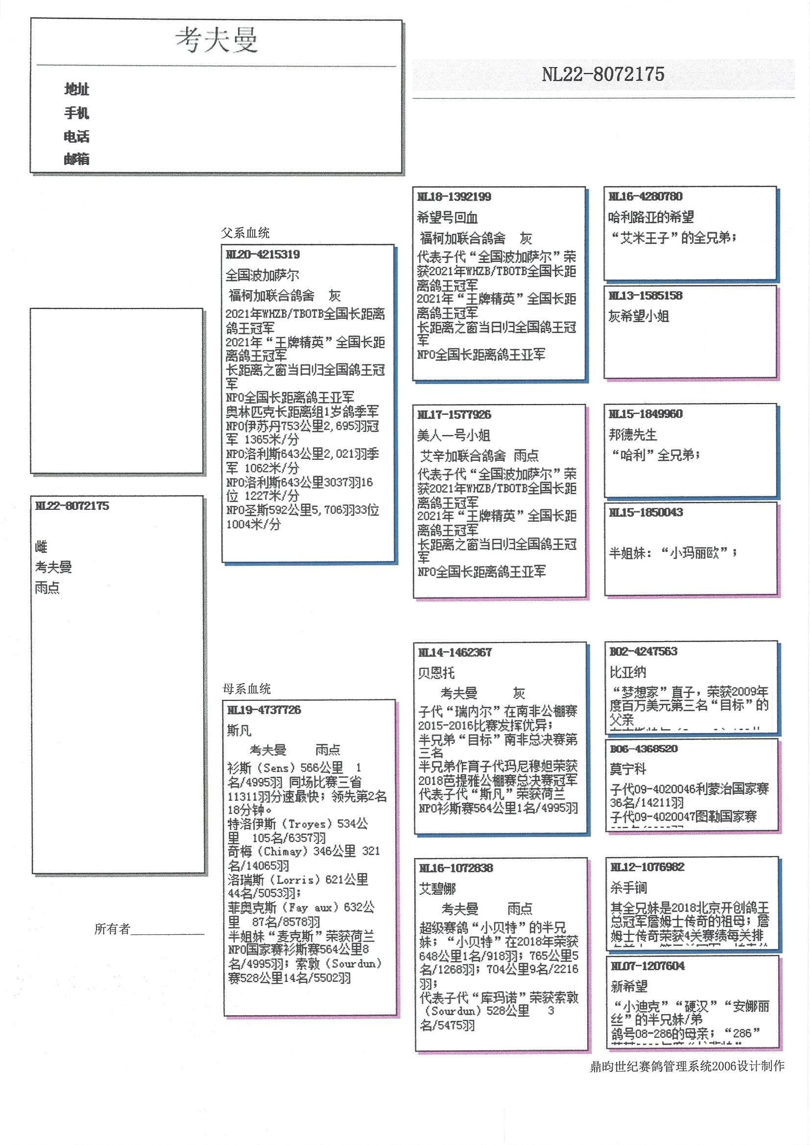 荣获: 21年WHZB一日长距离鸽王全国1位– 奥林匹克一日长距离鸽王3位– “王中王”鸽王全国1位 – “长距离之窗”鸽王全国1位 – NPO 伊苏丹1名 – 福金加使翔