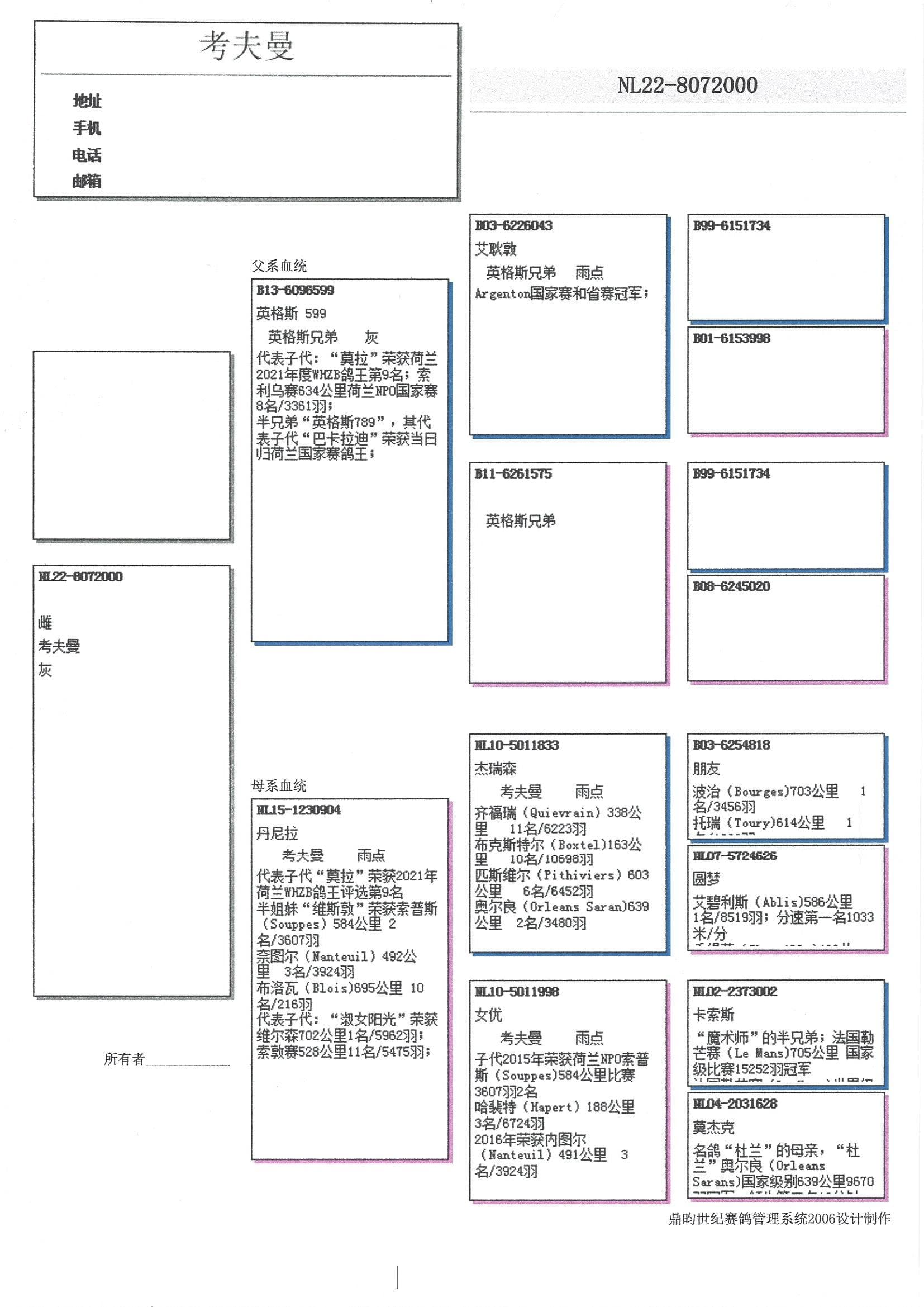 “英格斯 789”之半兄弟. “英格斯 789”的子代“巴卡拉迪”荣获: 一日长距离鸽王全国1位