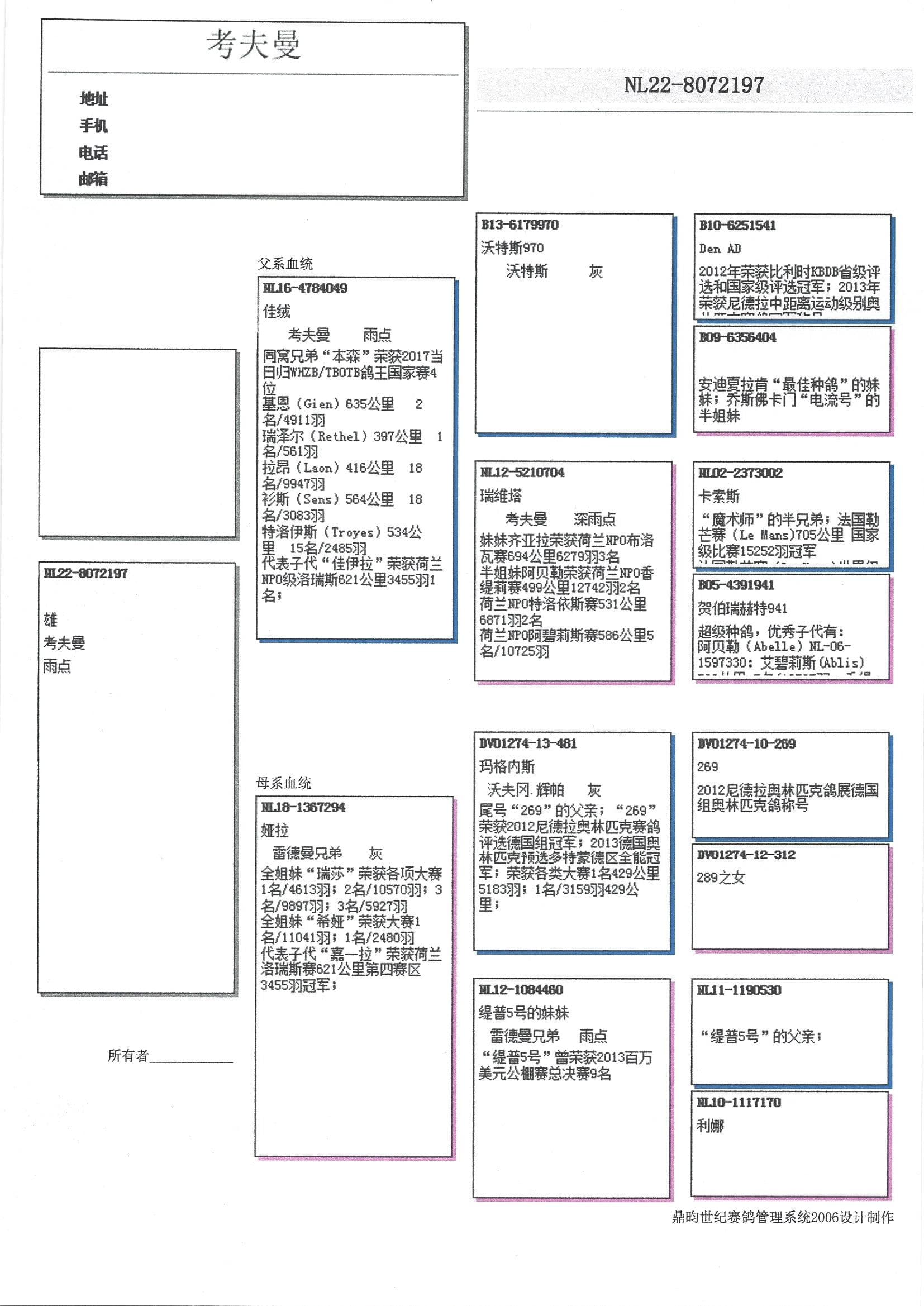 半平辈代表及佳绩: “李明”: 17年WHZB/王中王鸽王全国2位 - “阿奇拉” (21年WHZB鸽王全国5位), “昆兰” (NPO 伊苏丹 2,082羽2名) 和 “赫泽尔”
