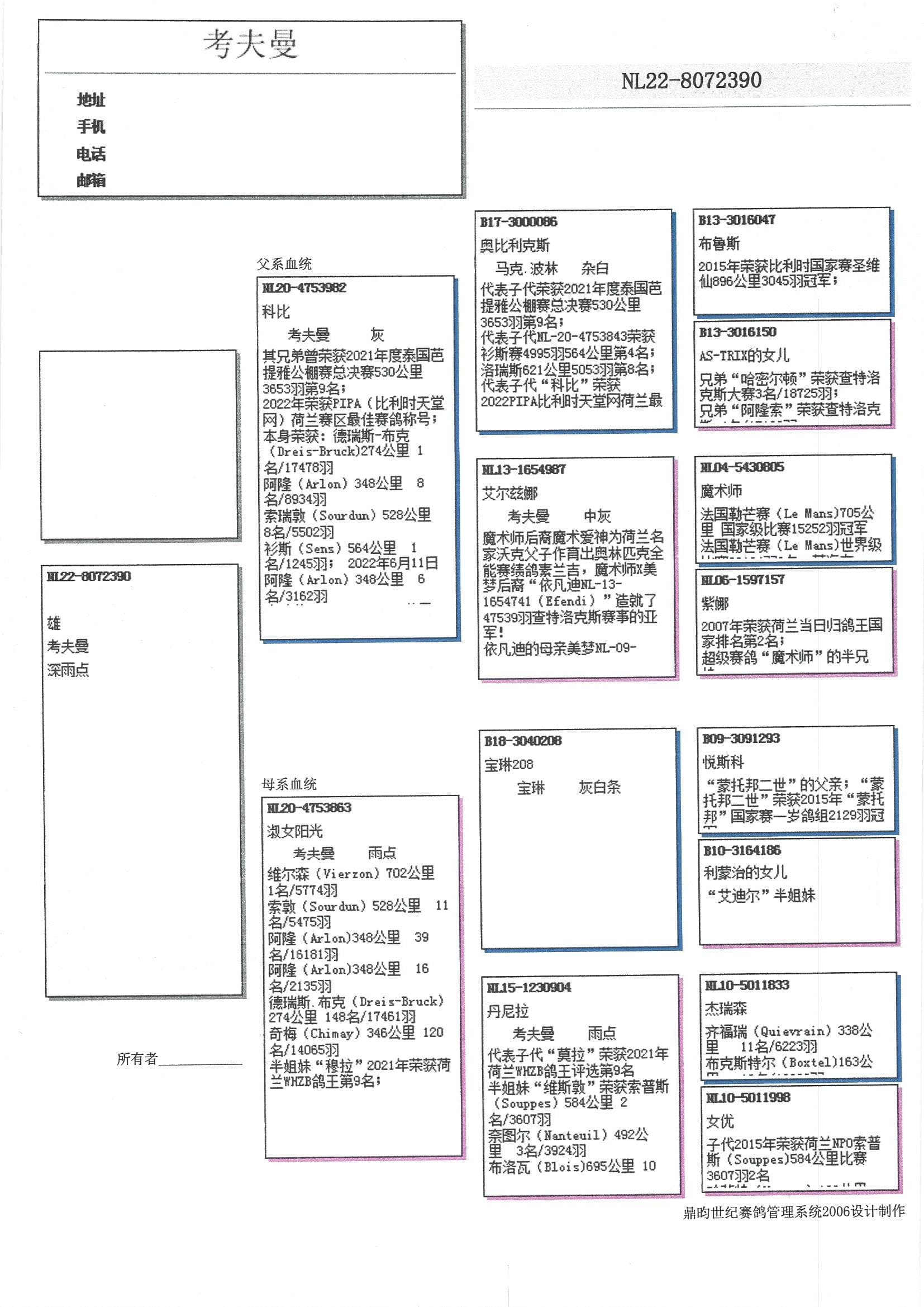 荣获: 22年Afd 10 综合鸽王7位