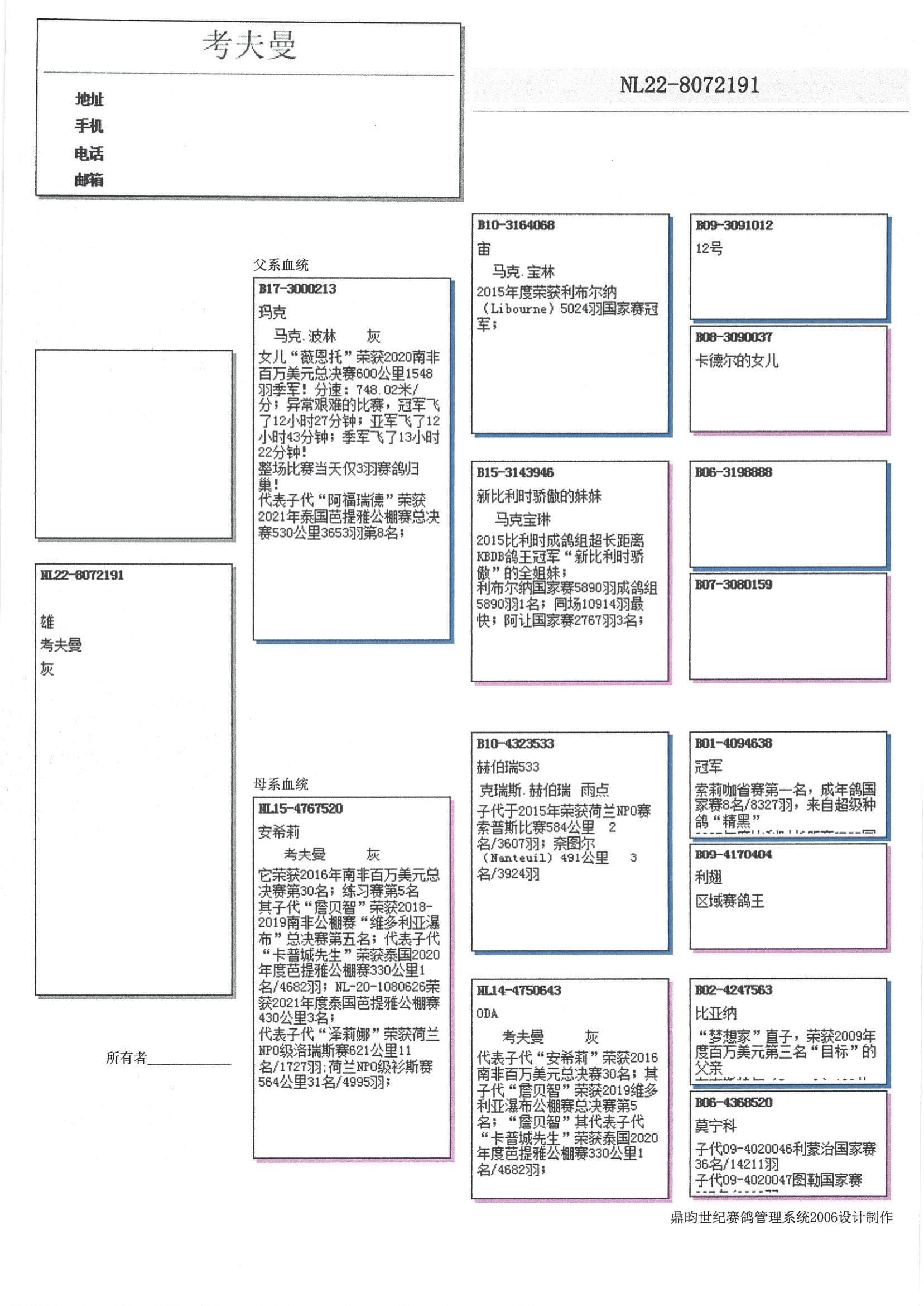 莱邦纳国家赛 5,024羽1名 – 布瑞福国家赛 5,286羽7名 – 苏亚克国家赛 7,760羽18名 – 卡奥尔国家赛 6,576羽42名 – 图勒国家赛 5,976羽81名 – 利蒙治国家赛 14,271羽101名 等等