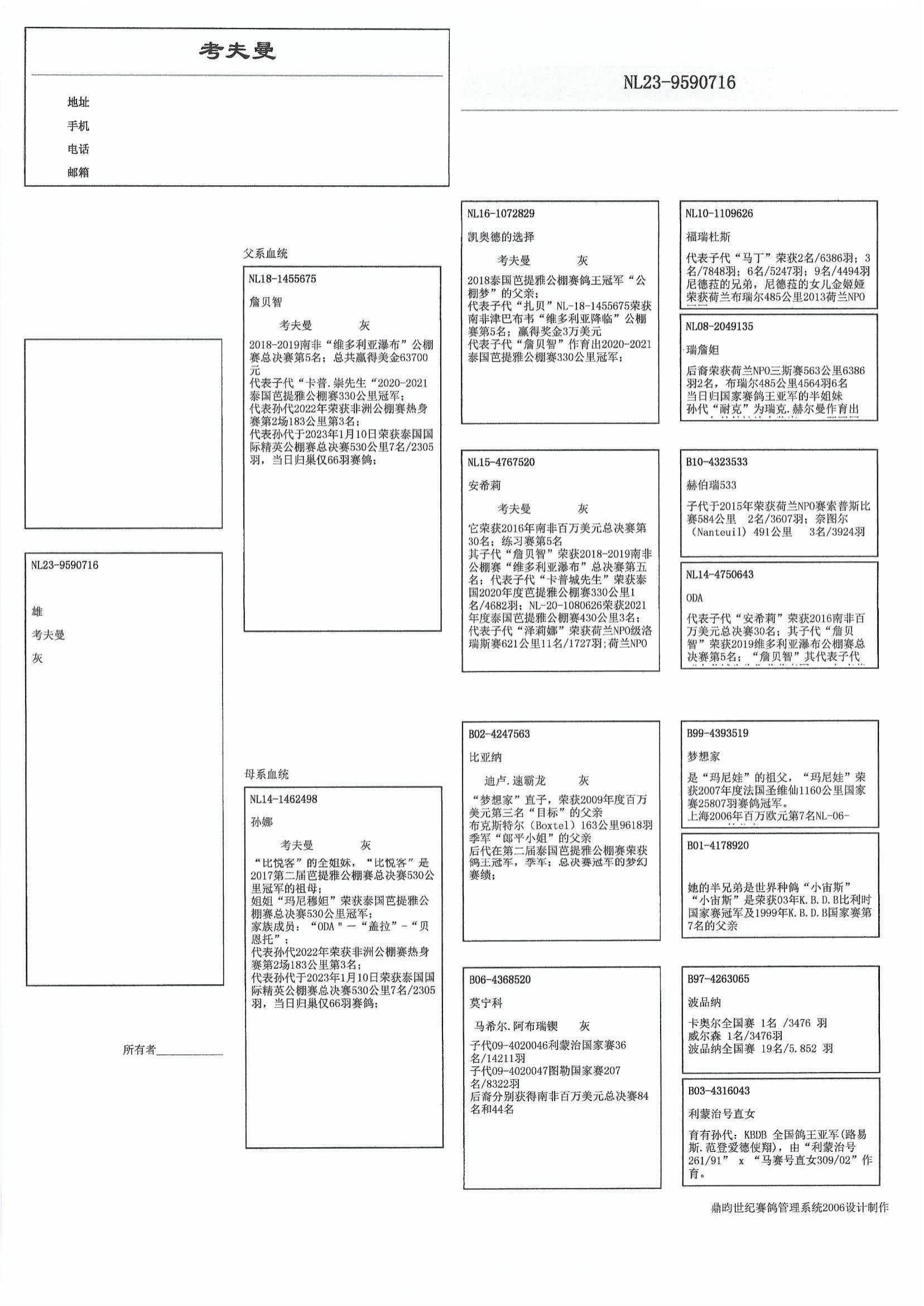 许多考夫曼铭鸽之祖母